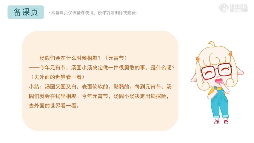 l课件准备:《小汤圆过元宵》PPT。