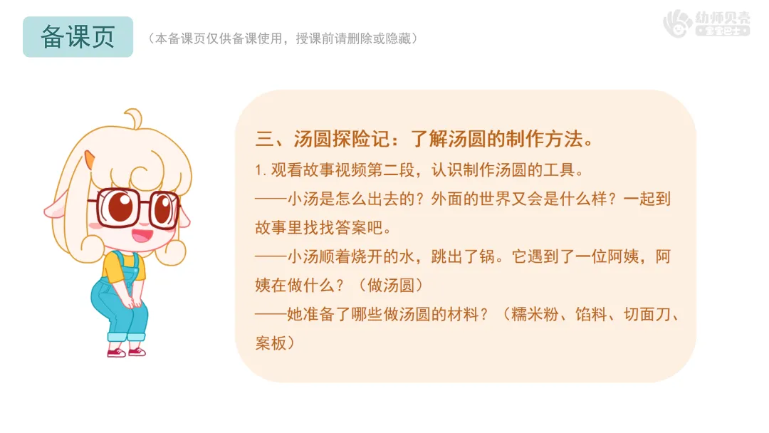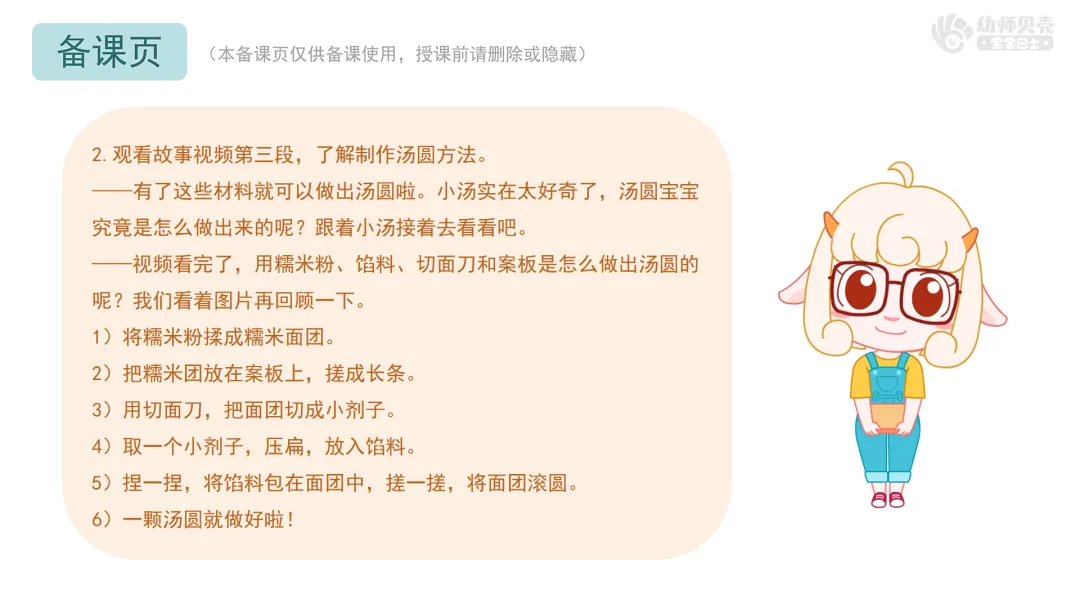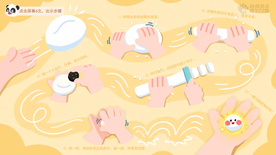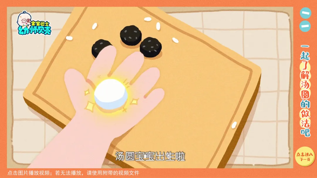 2.观看故事视频第三段,了解制作汤圆方法。