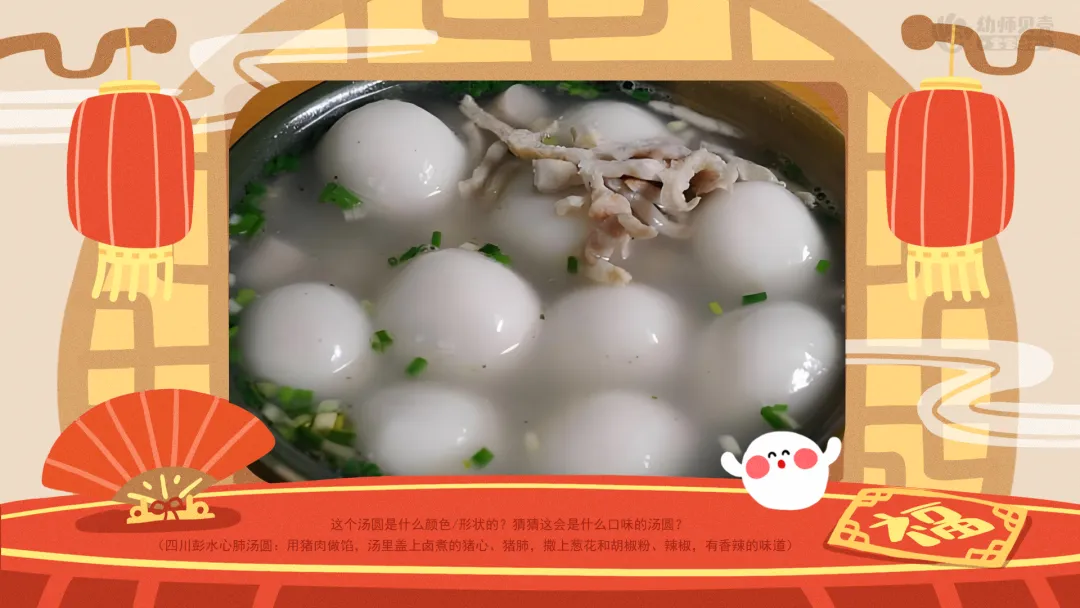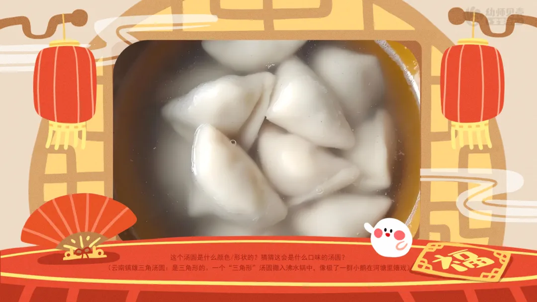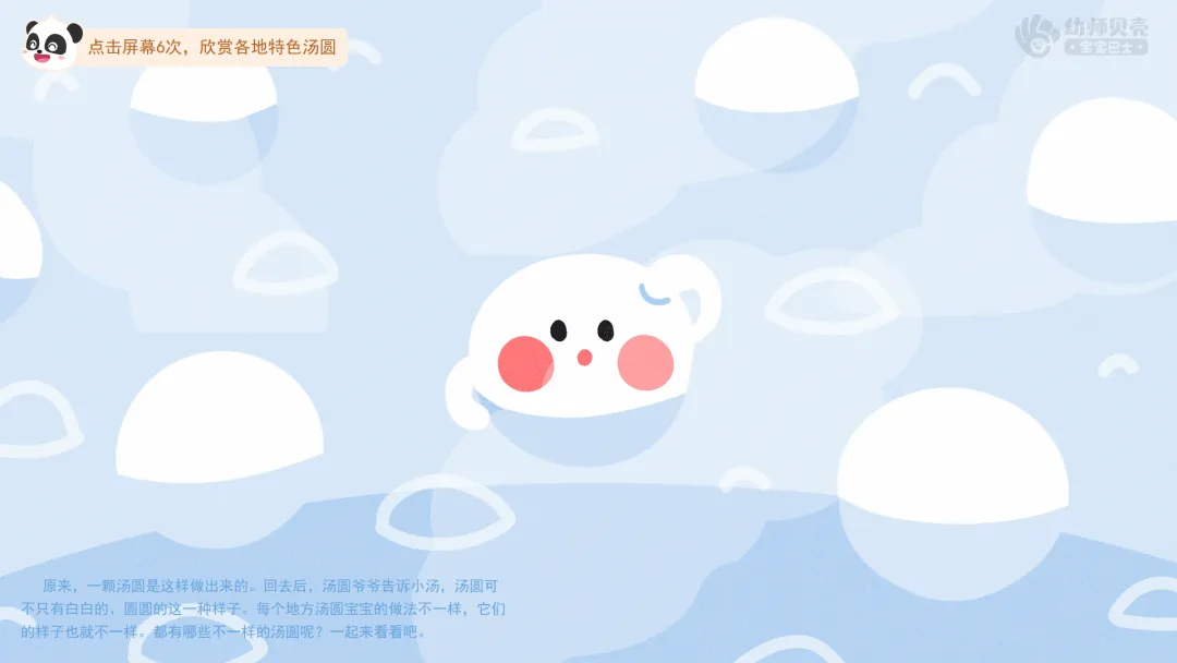 ——原来,一颗汤圆是这样做出来的。回去后,汤圆爷爷告诉小汤,汤圆可不只有白白的、圆圆的这一种样子。每个地方汤圆宝宝的做法不一样,它们的样子也就不一样。都有哪些不一样的汤圆呢?一起来看看吧。