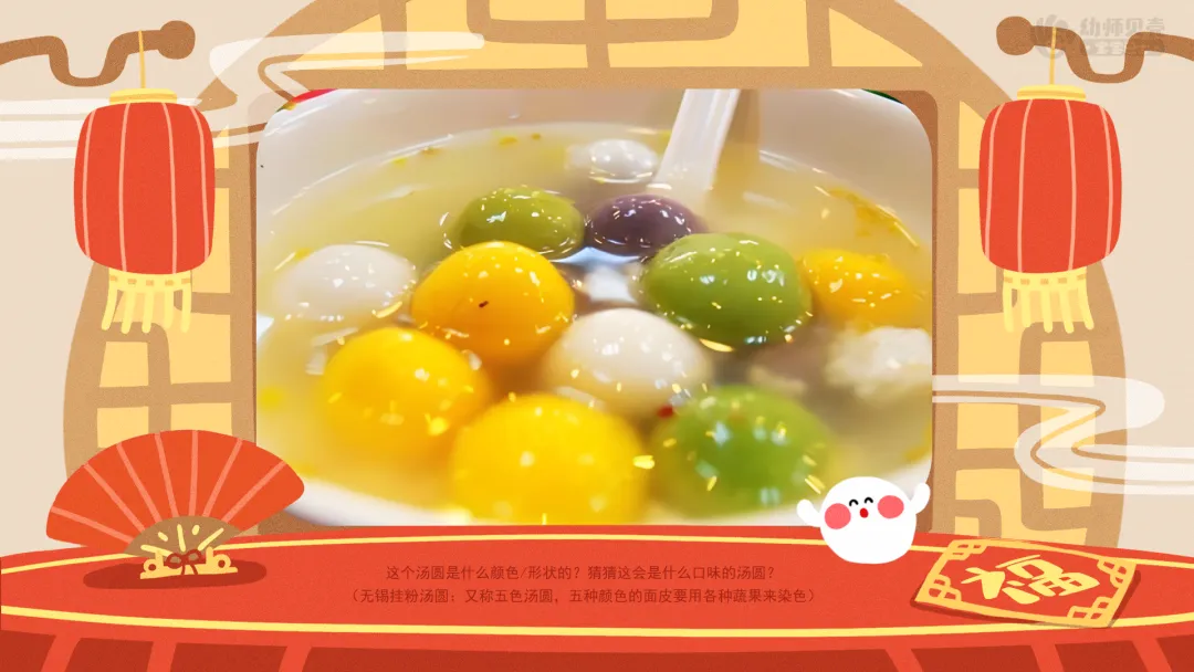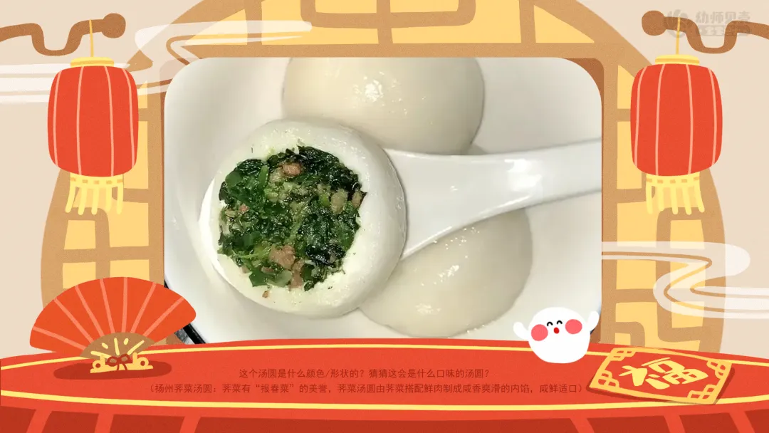 ——除了这些,元宵节还要吃一种特别的食物,有没有小朋友知道是什么?