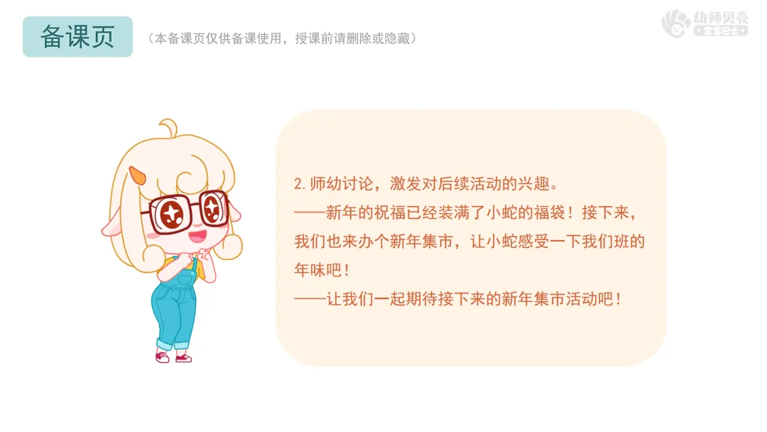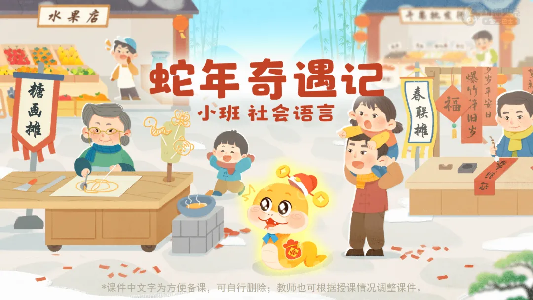 ——新年的祝福已经装满了小蛇的福袋!接下来,我们也来办个新年集市,让小蛇感受一下我们班的年味吧!