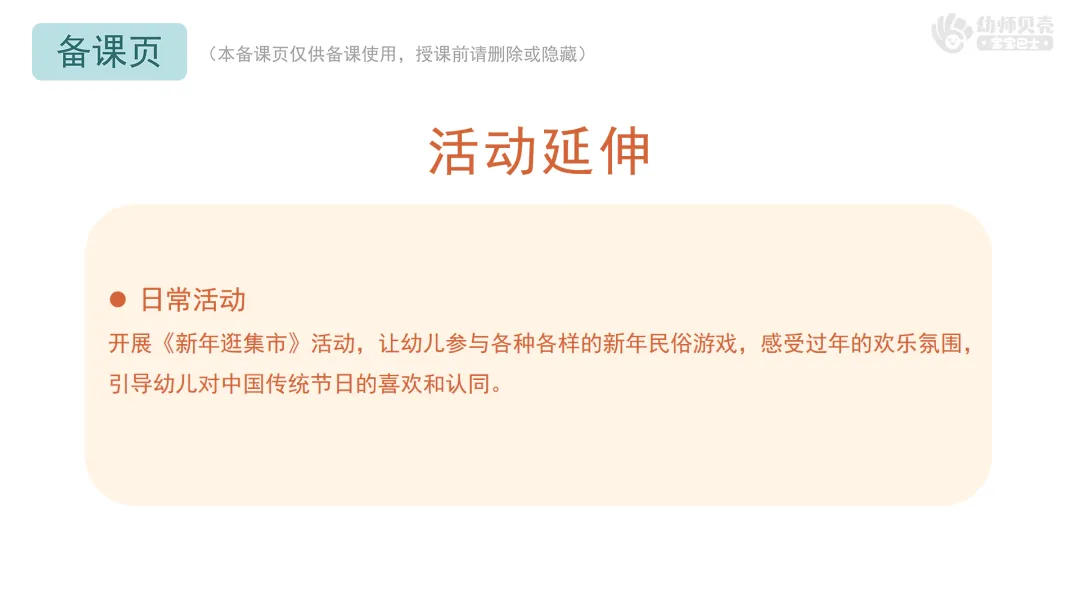 l重点:知道春节的传统习俗,感受春节到来的欢乐气氛。