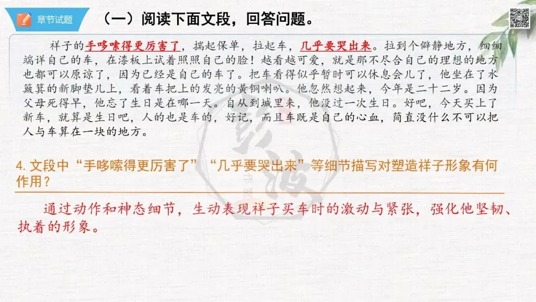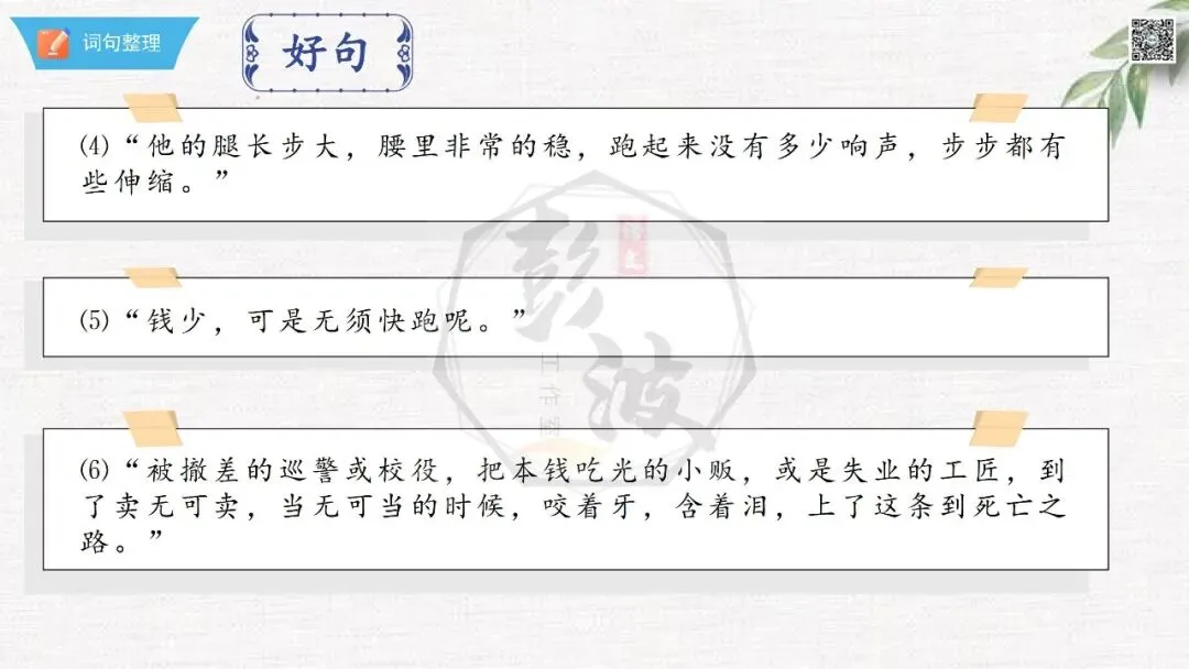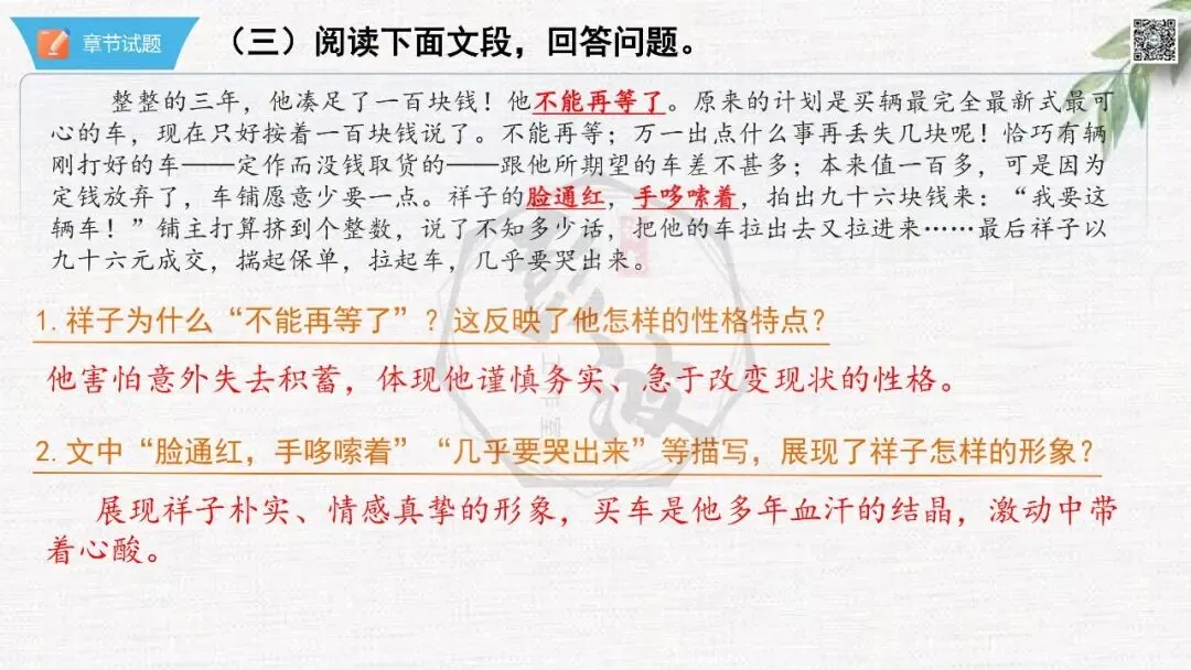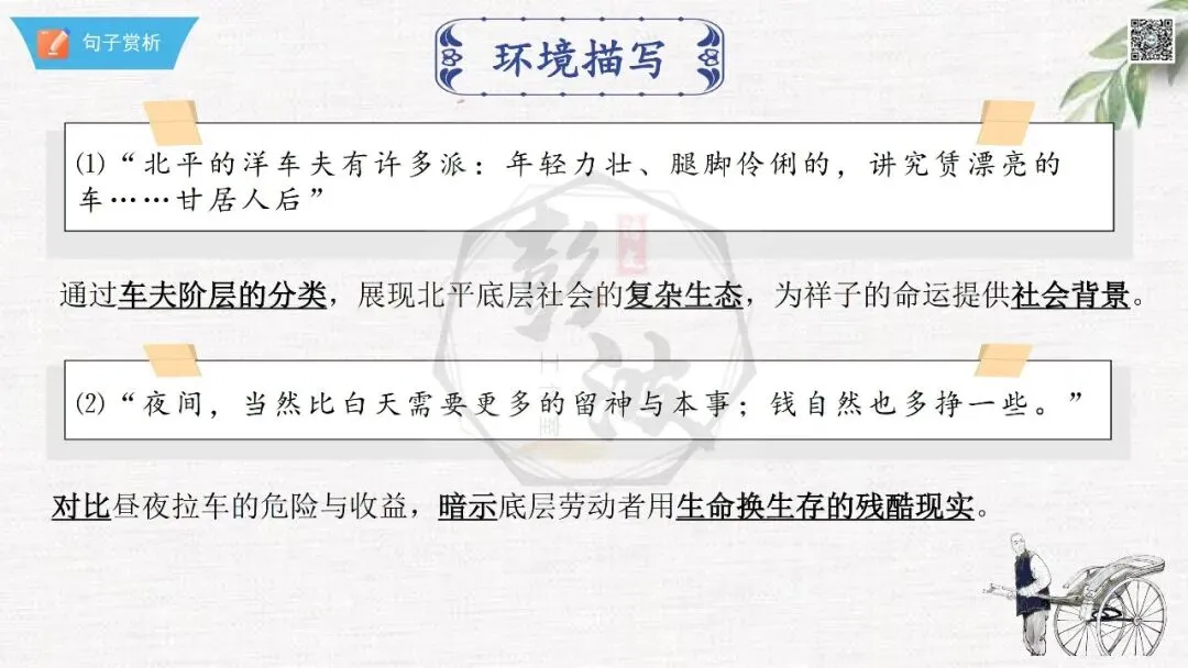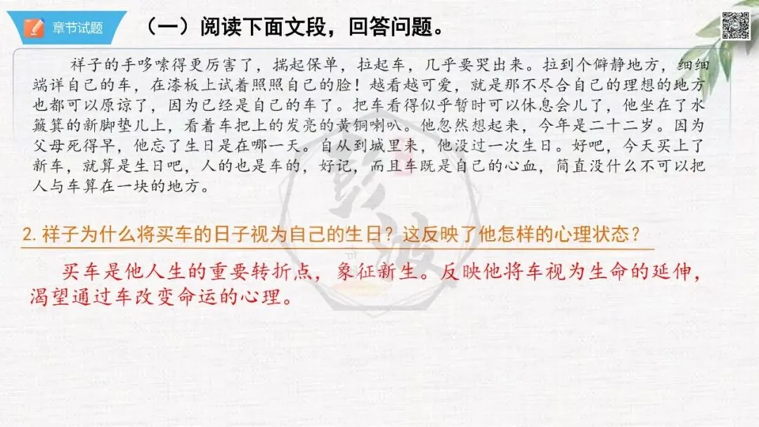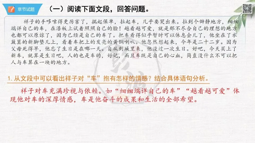◆02《骆驼祥子》章节课件24章-情节梳理+人物形象+语句赏析+章节试题(PPT)(65元)