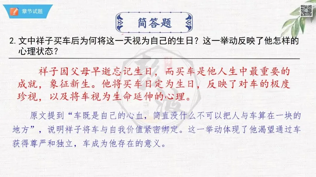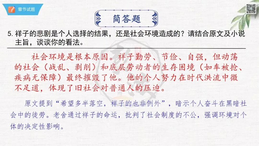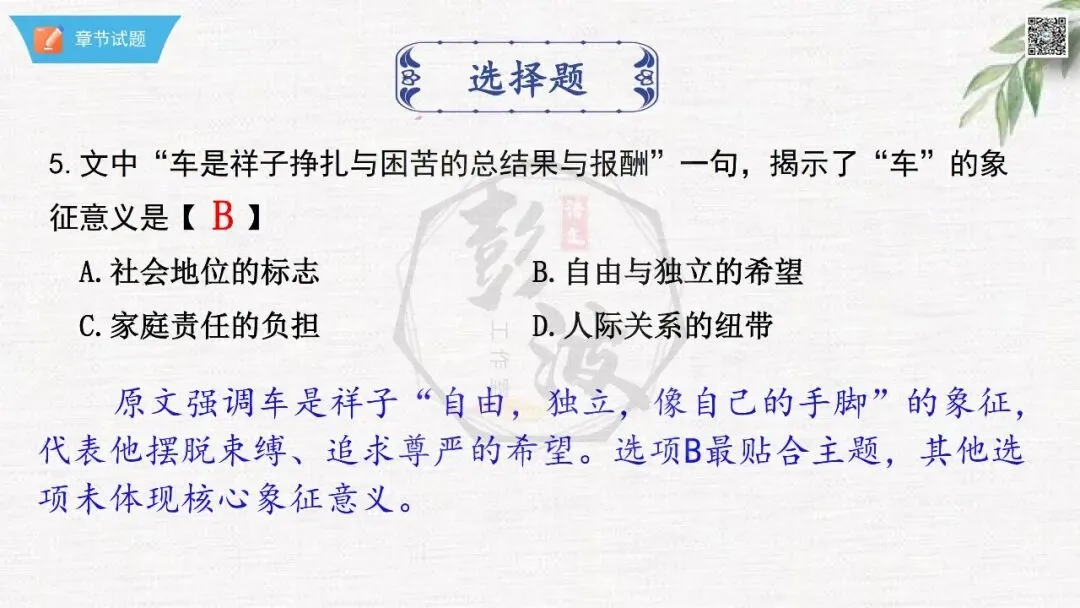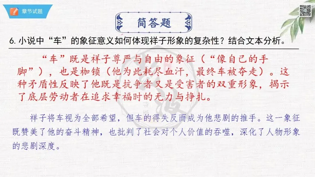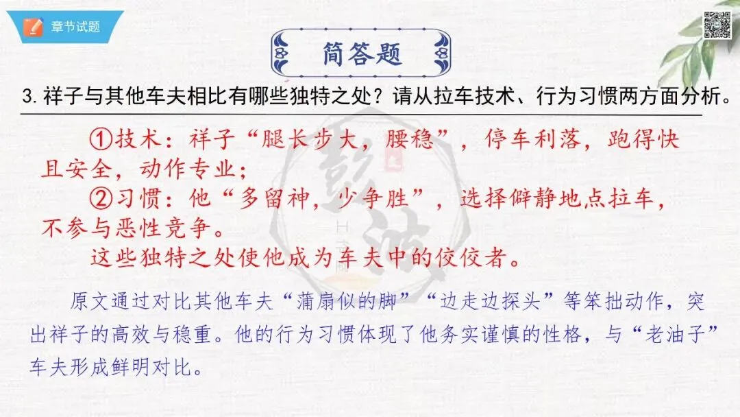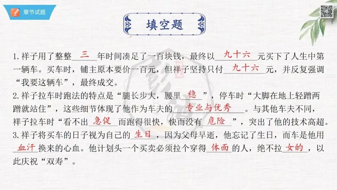 ◆02《骆驼祥子》章节课件24章-情节梳理+人物形象+语句赏析+章节试题(PPT)(65元)
