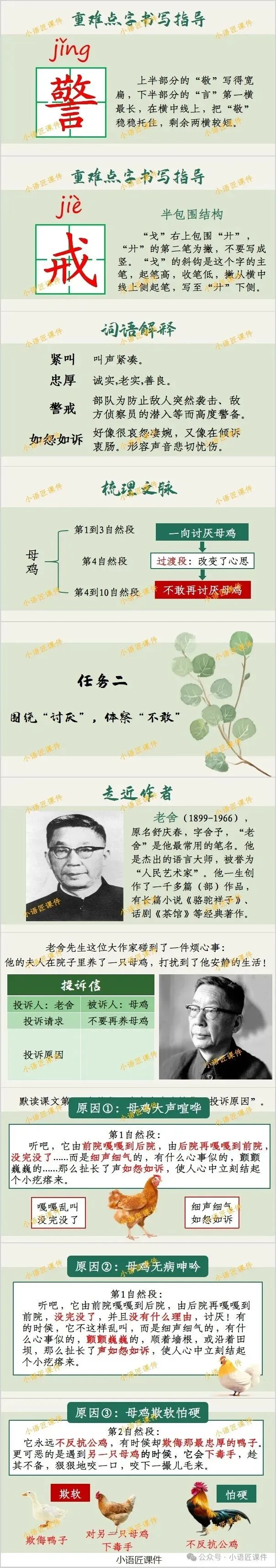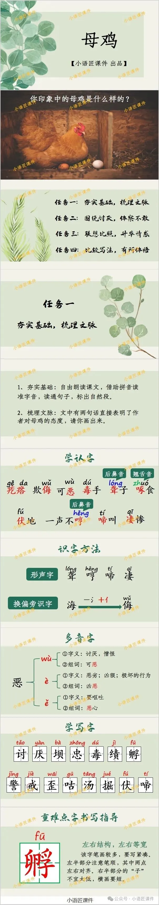 大家好,我是小语匠课件!今天给大家分享四年级下册《母鸡》的独家课件。