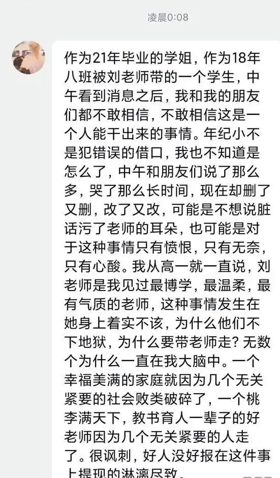 刘老师女儿微博发文