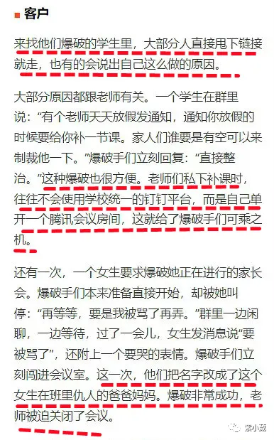 就是某位学生不想上网课,或者不喜欢老师的缘故,会花钱找这个组织下单,将网课房间账号和密码账号,交给这群“不学无术”专搞破坏的少年们,委托他们在网课课堂上,干扰正常上课秩序。