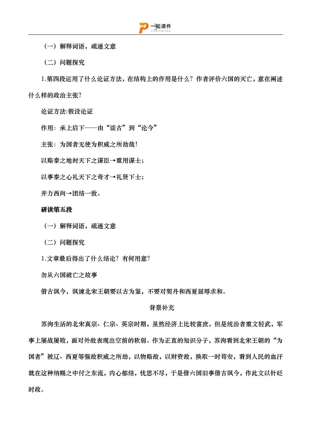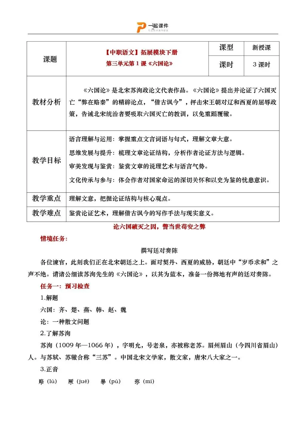 【中职语文拓展模块下】| 《六国论》:课件+教学设计