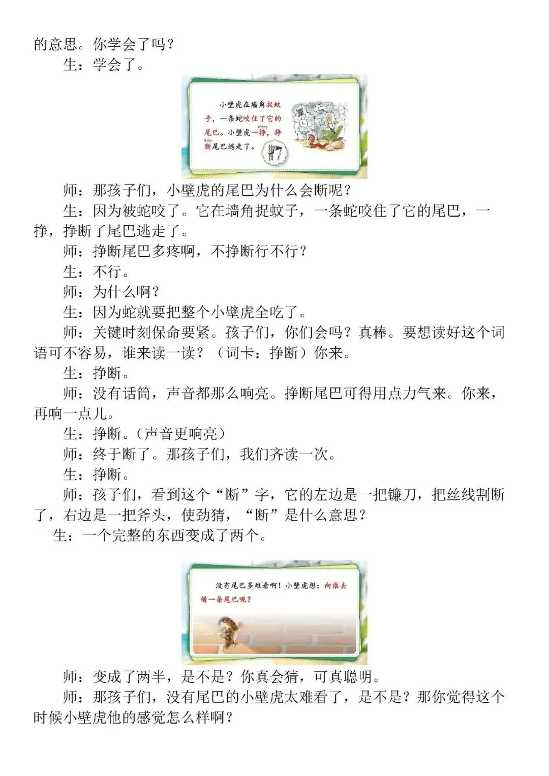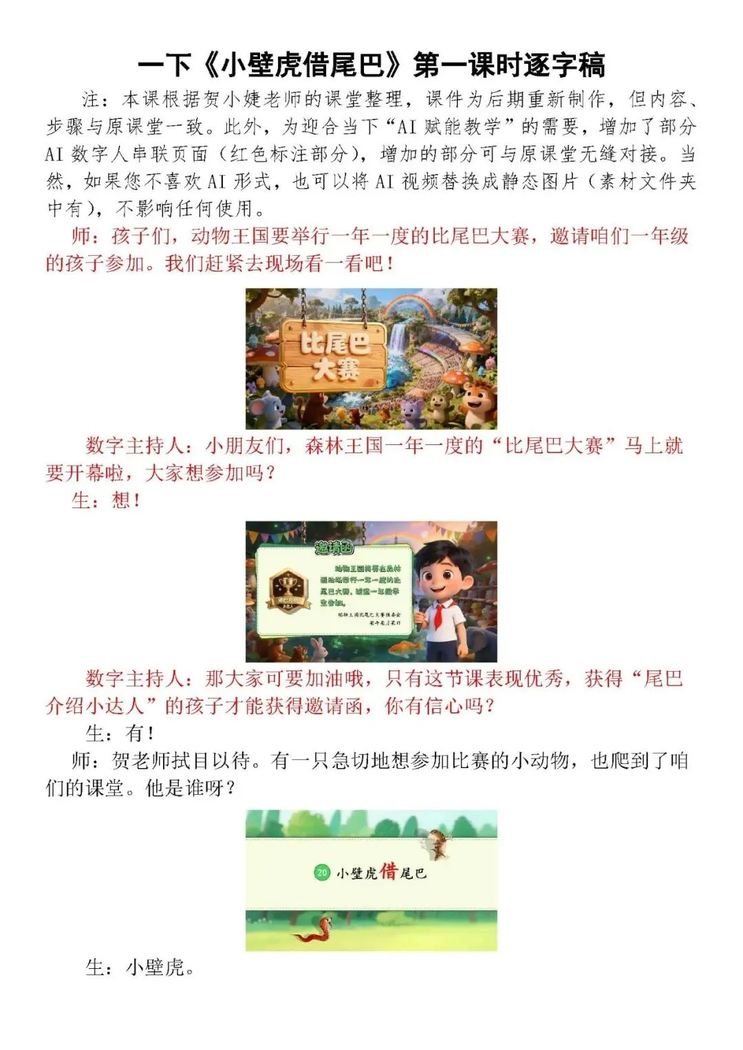 >一下《小壁虎借尾巴》第一课时AI精品课件(PPT/希沃均有)有配套逐字稿、教学设计等