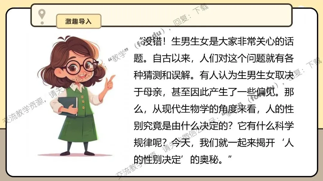 当前位置:首页>课件>2026春人教版八年级下册生物新教材课件:6.2.4 人的性别决定
