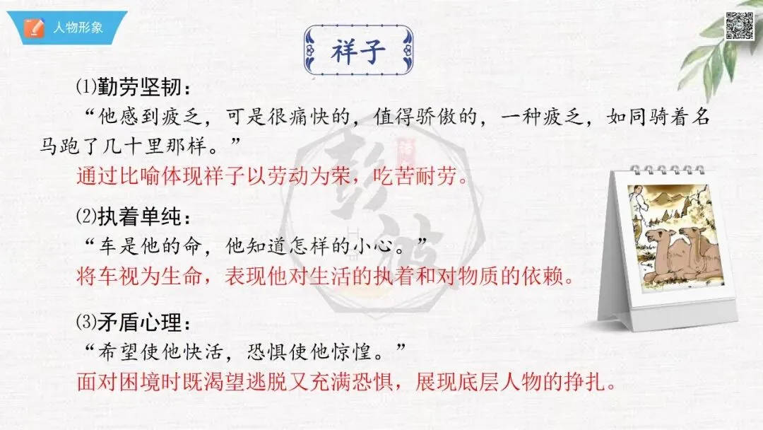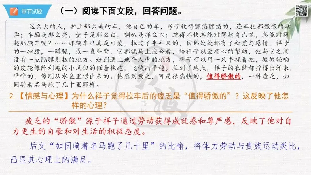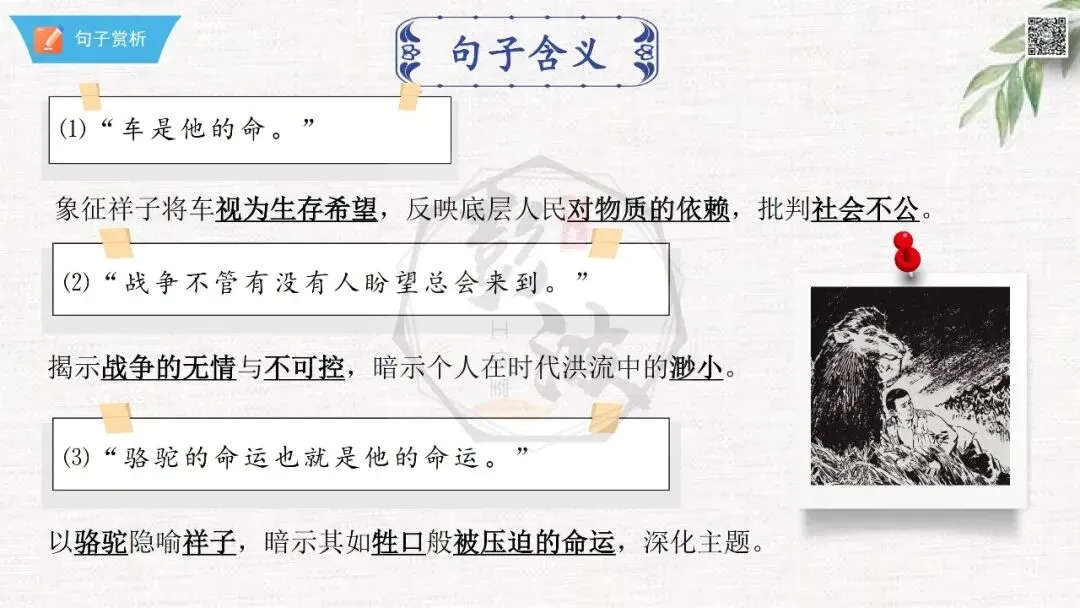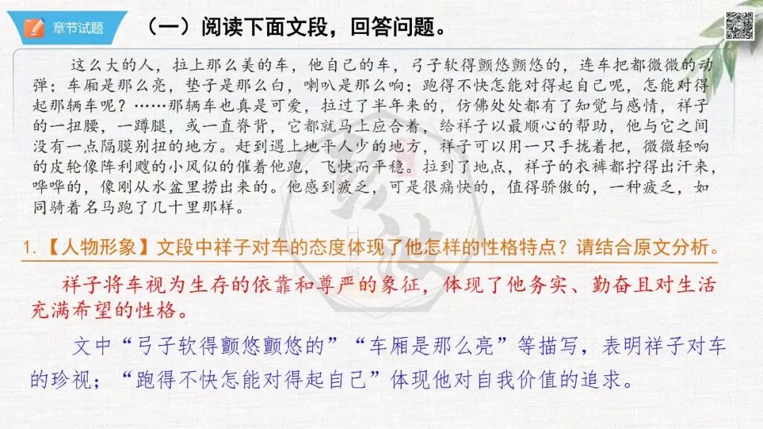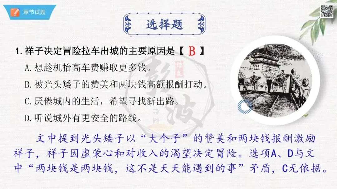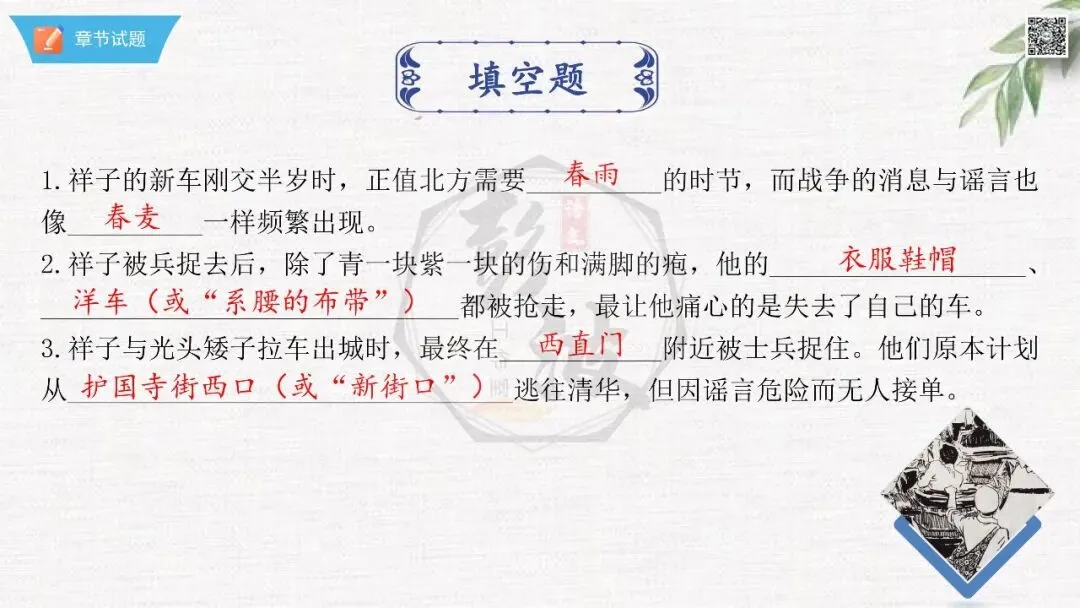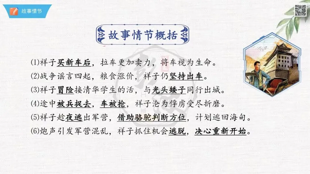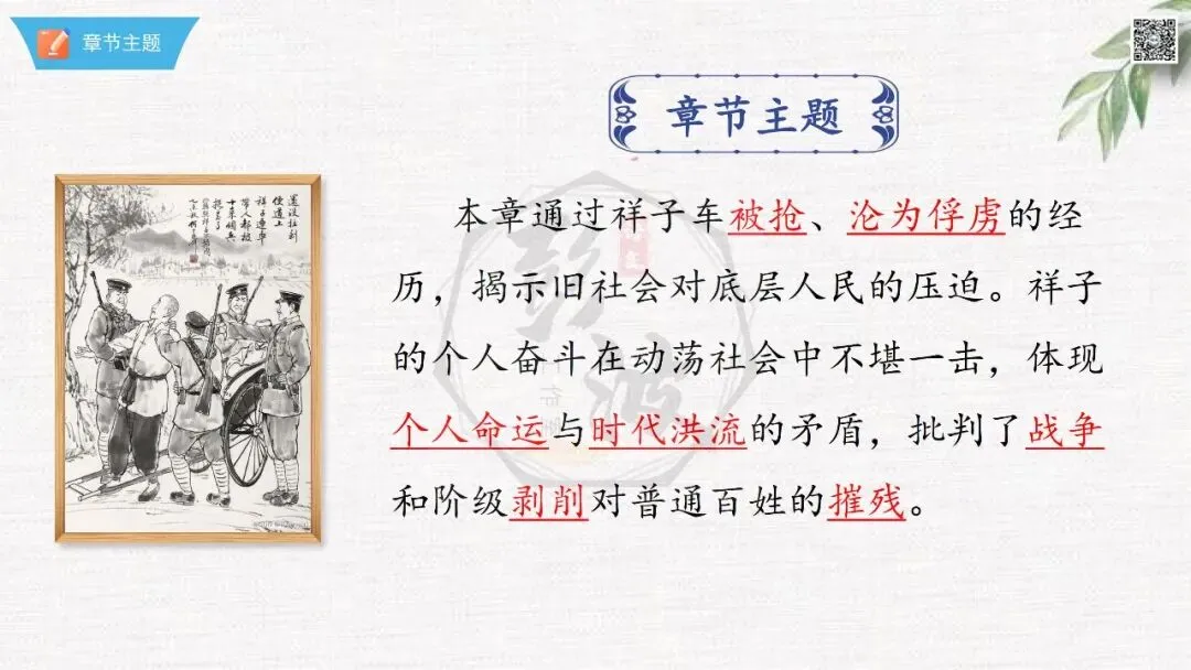 ◆02《骆驼祥子》章节课件24章-情节梳理+人物形象+语句赏析+章节试题(PPT)(65元)