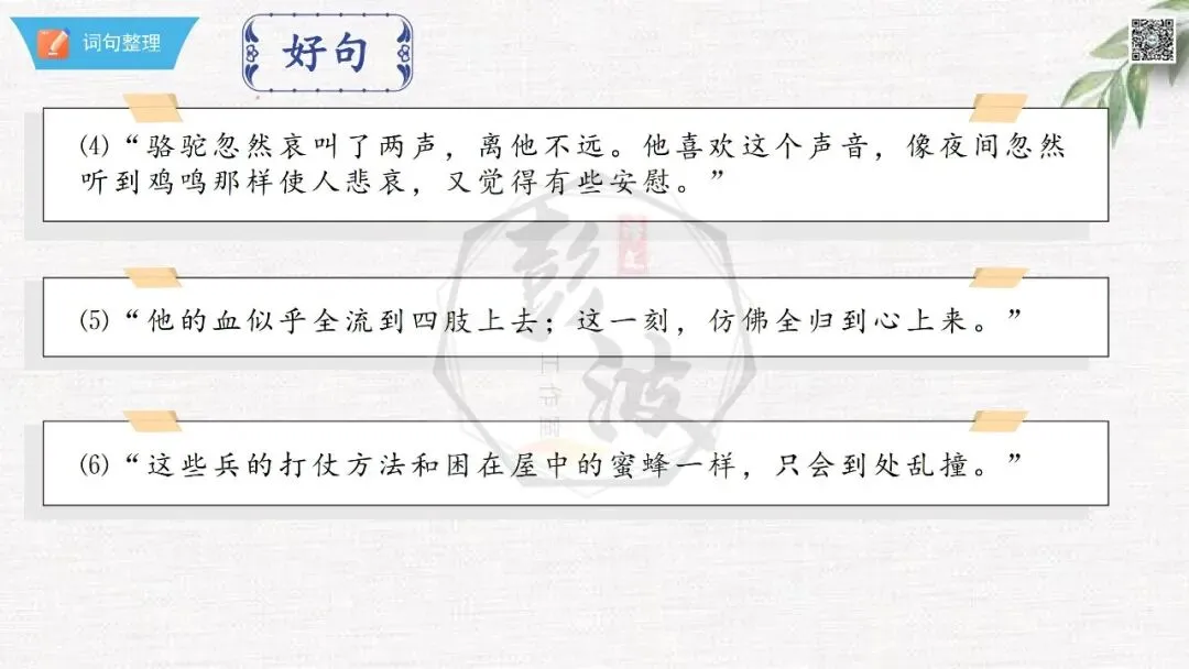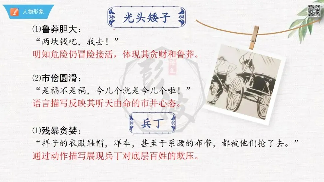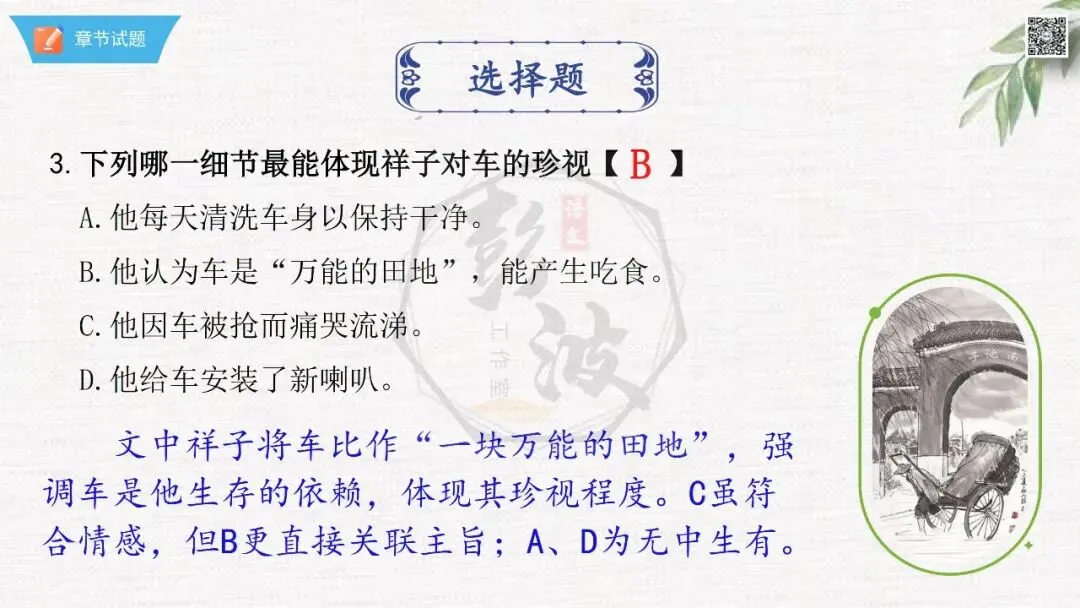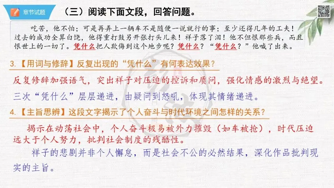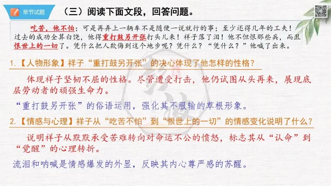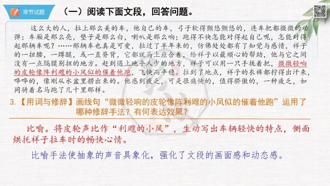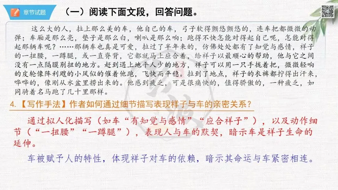 ◆02《骆驼祥子》章节课件24章-情节梳理+人物形象+语句赏析+章节试题(PPT)(65元)