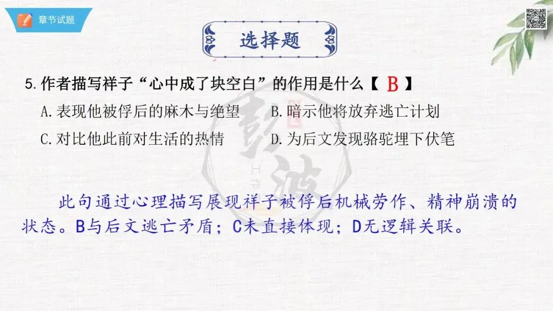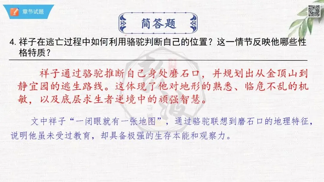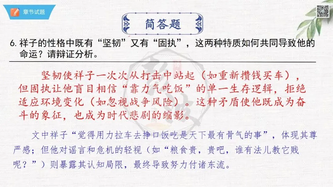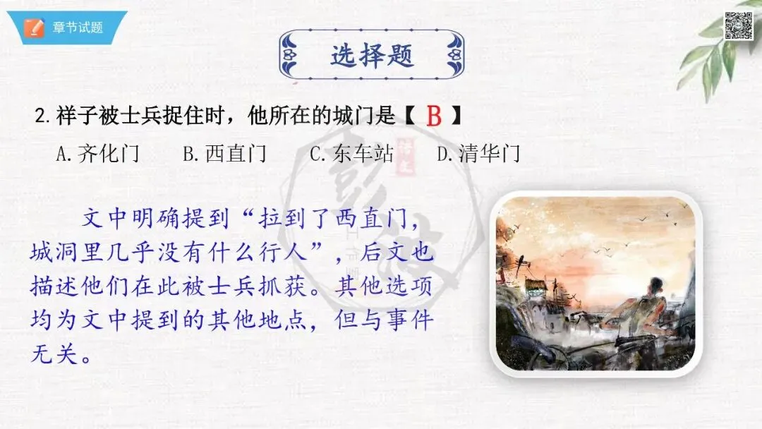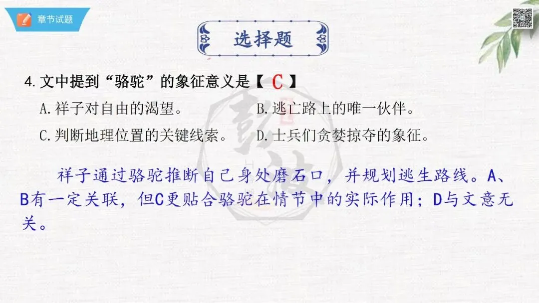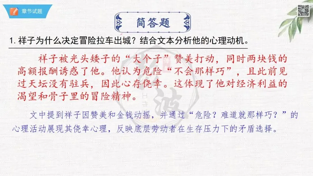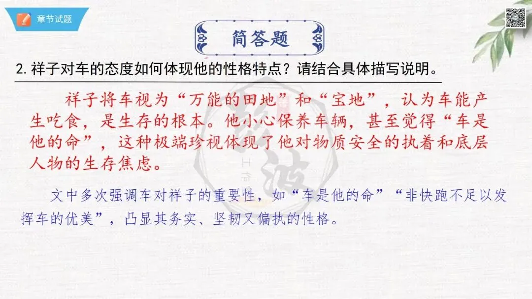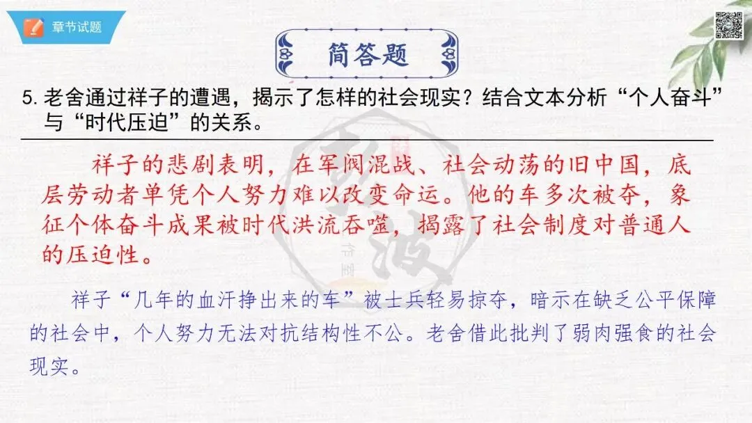 ◆02《骆驼祥子》章节课件24章-情节梳理+人物形象+语句赏析+章节试题(PPT)(65元)