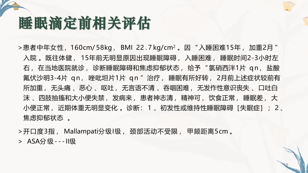 麻醉睡眠:一例患者的管理(PPT课件)