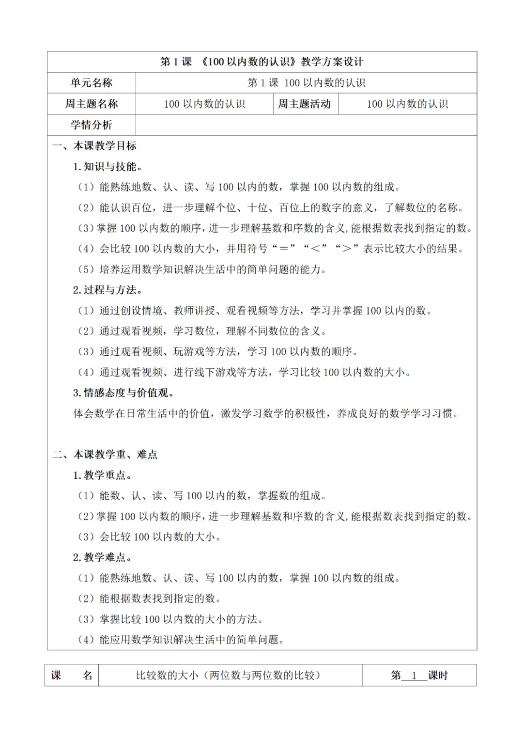 2025春冀教版数学一年级下册《教案设计+课件PPT+课堂提示作业》