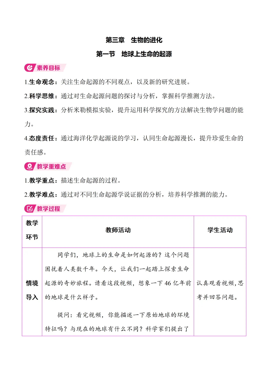 新教材 人教版生物学八年级下册核心素养教案(2026春)