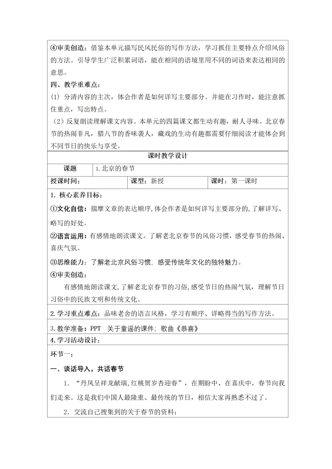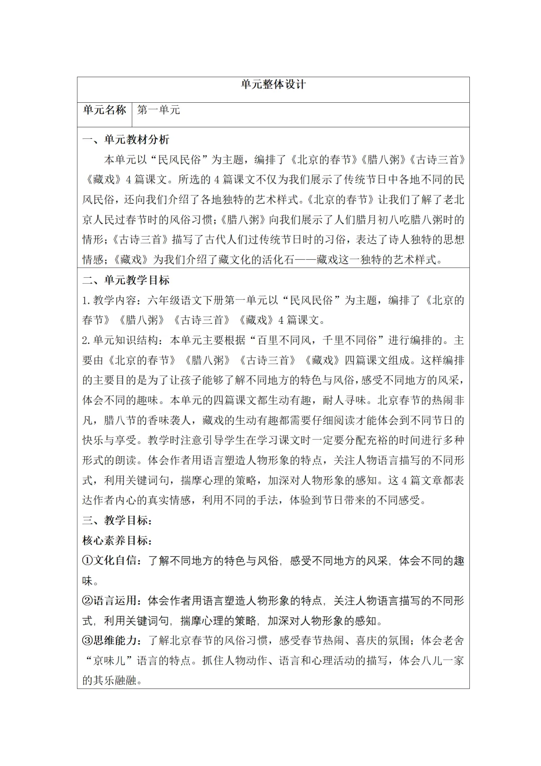 部编版语文六年级下册大单元核心素养教案设计(3套)