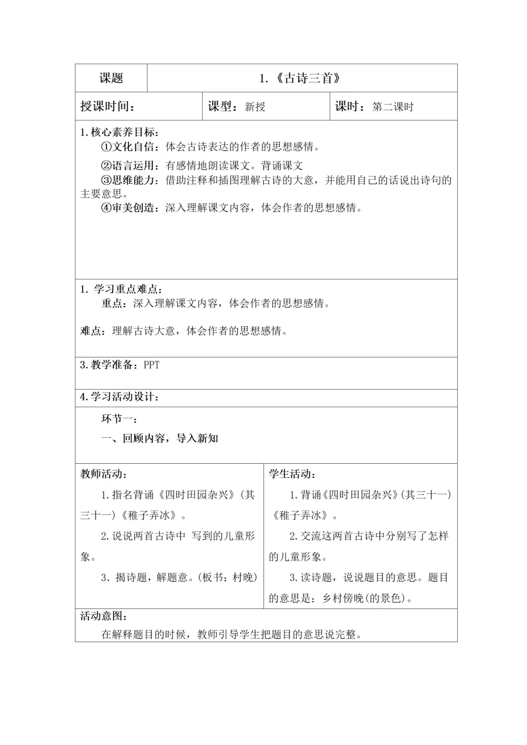 部编版语文四年级下册大单元核心素养教案设计(3套),可下载!
