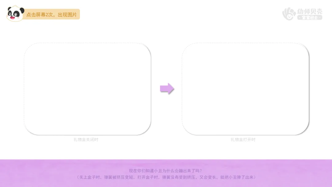 ——刚刚很多小朋友都注意到了小丑底下的弹簧,觉得是弹簧把小丑弹出来的。是不是这样的呢?我们一起来验证一下吧。
