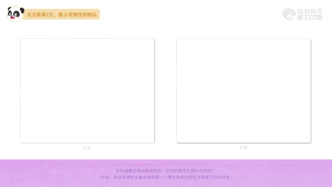 ——你们还知道哪些物品具有弹性?它们的弹性又有什么作用呢?(床垫、沙发、枕头……)