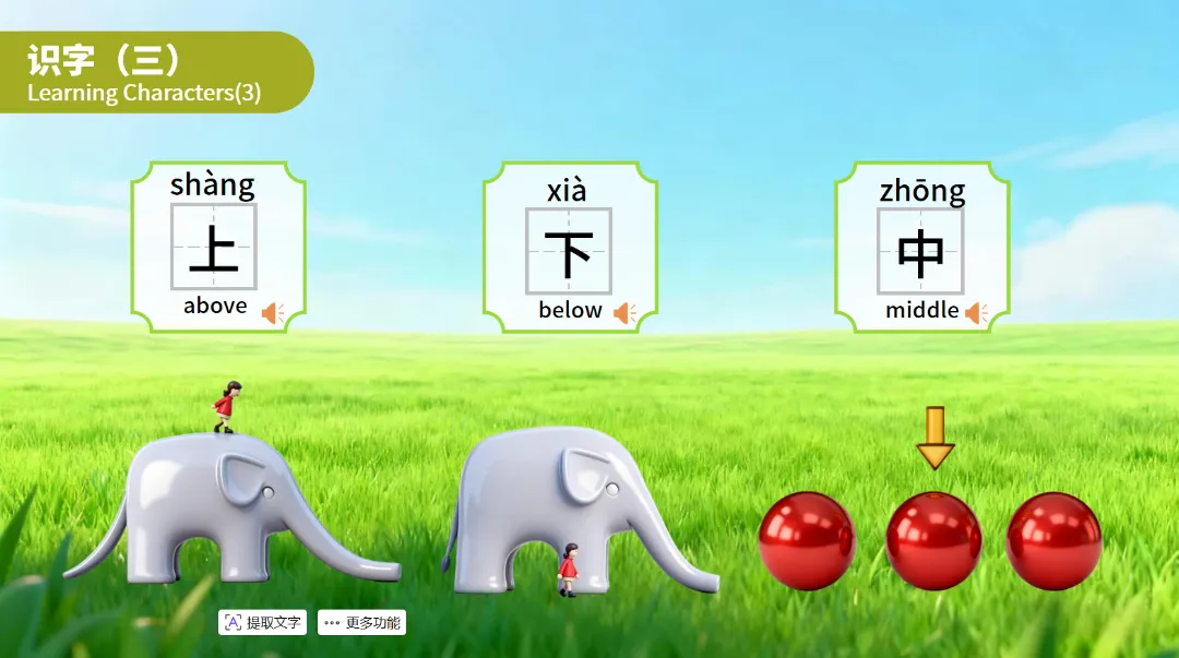在学生们掌握了生字和拼音的基础上,课件还提供了阅读拓展内容——“猜谜语”。