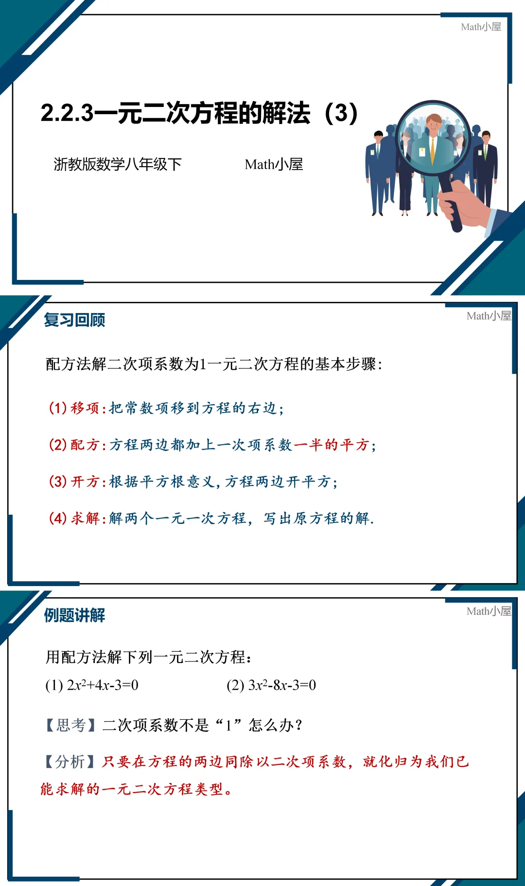 >新浙教版八下课件——2.2.3一元二次方程的解法(3)