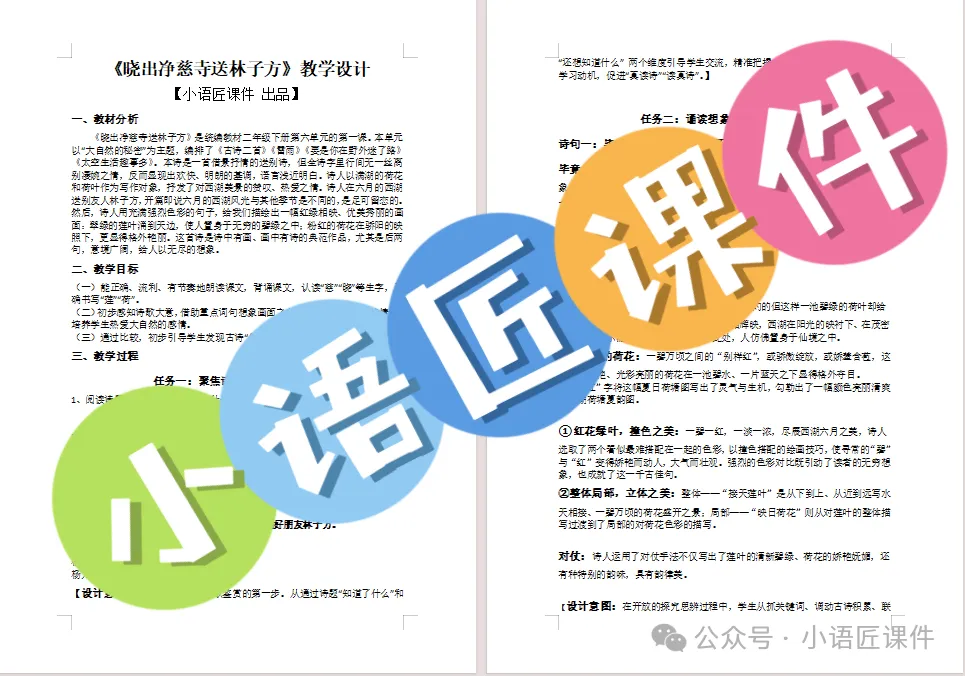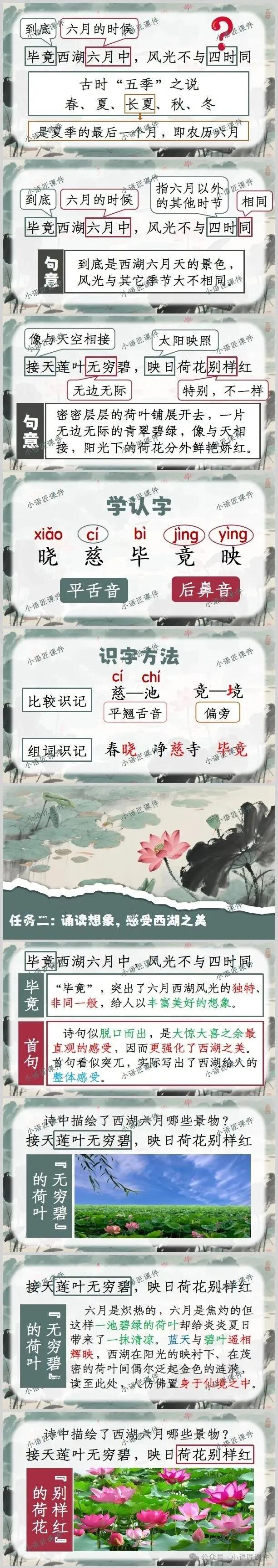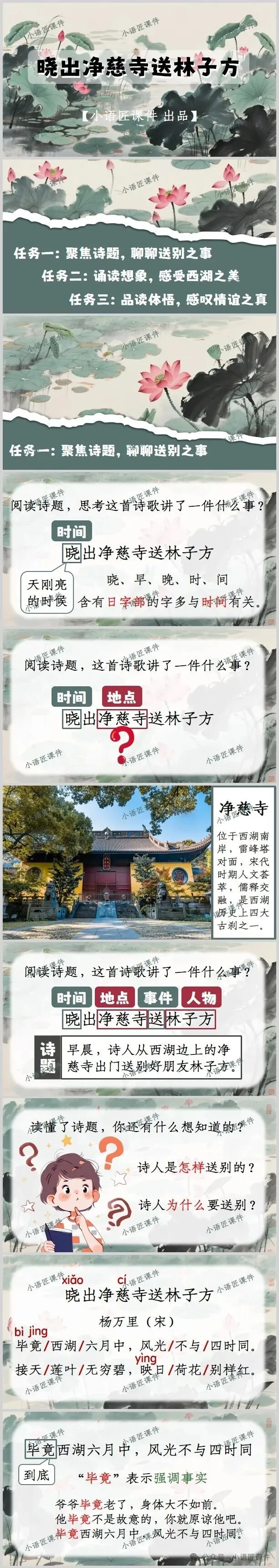 今天给大家分享的是部编人教版二年级下册古诗二首《晓出净慈寺送林子方》的独家课件。