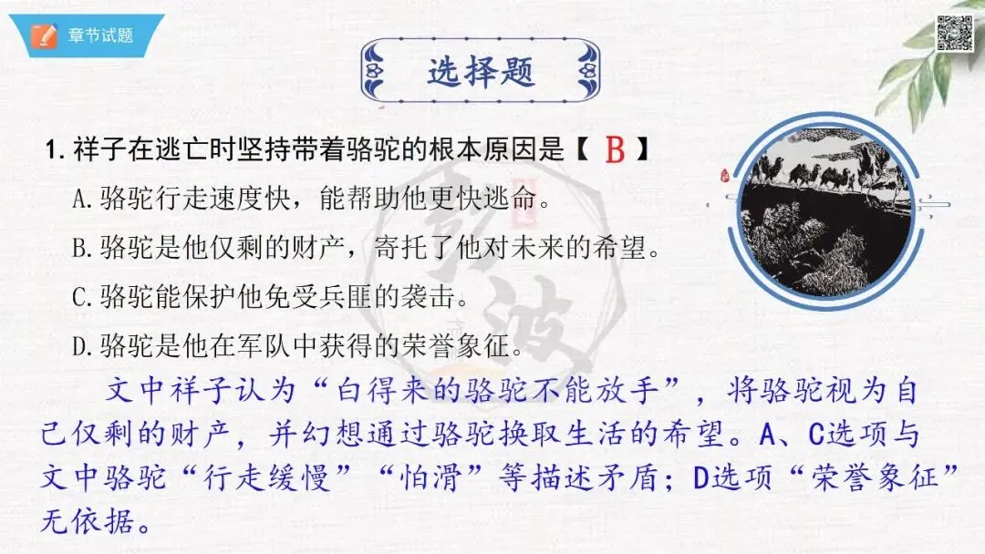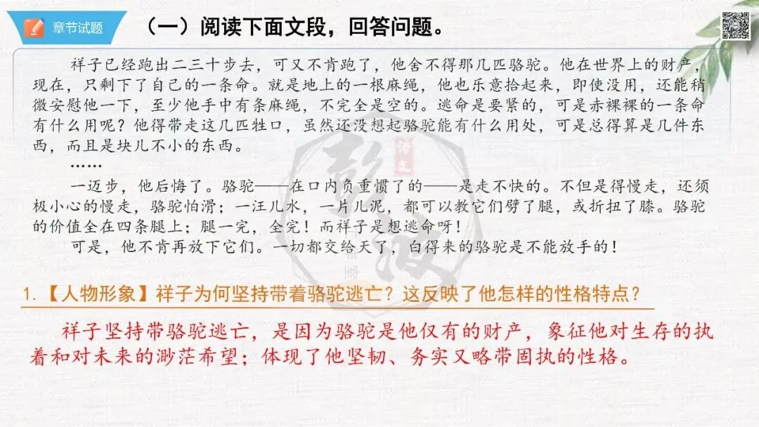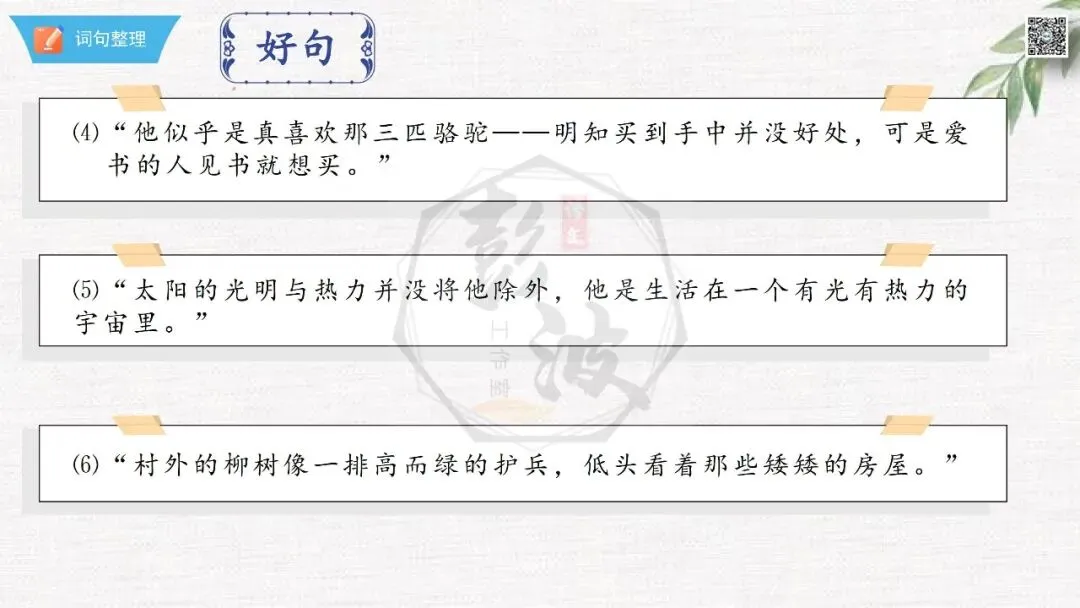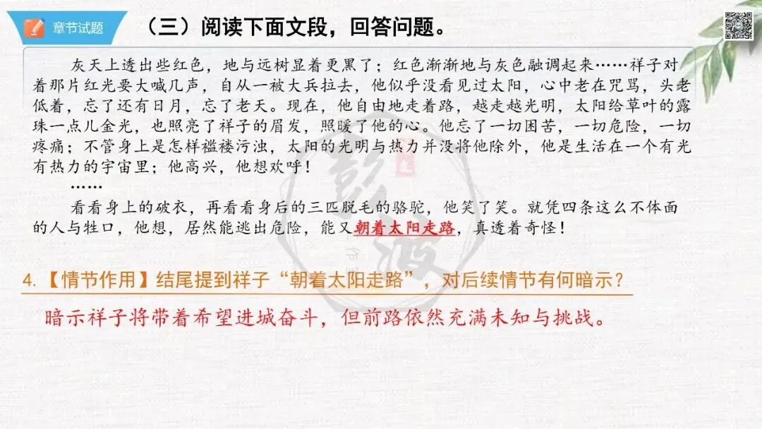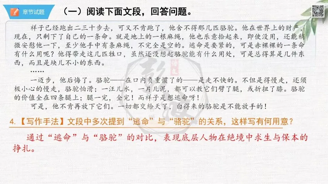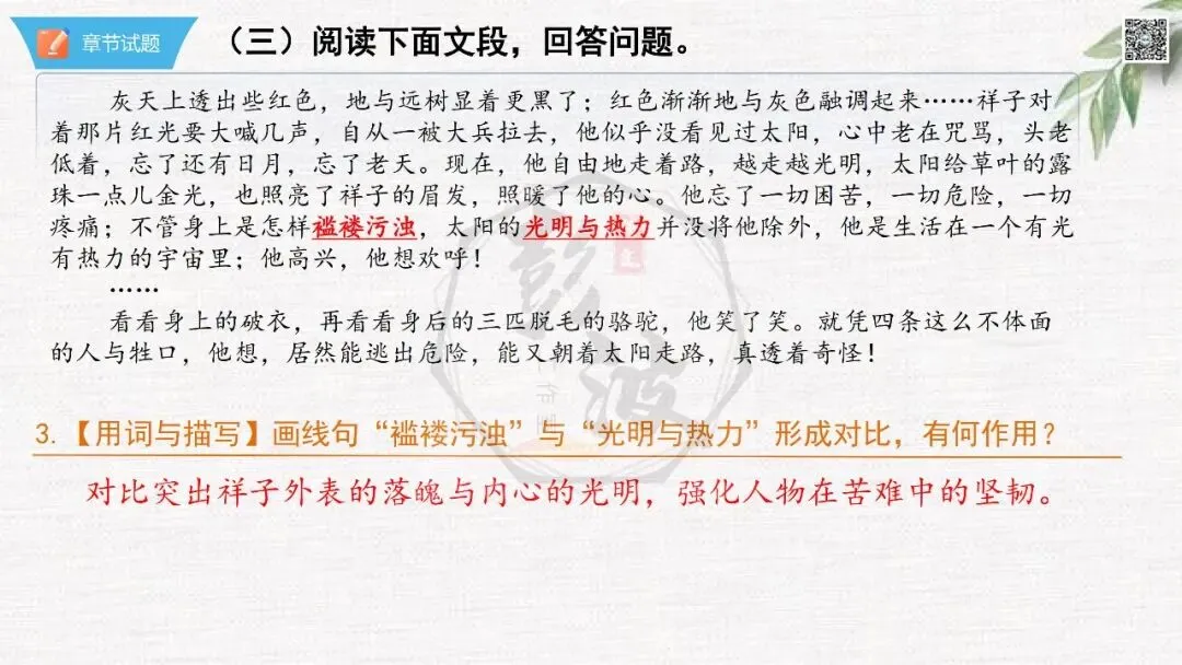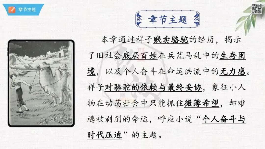 ◆02《骆驼祥子》章节课件24章-情节梳理+人物形象+语句赏析+章节试题(PPT)(65元)
