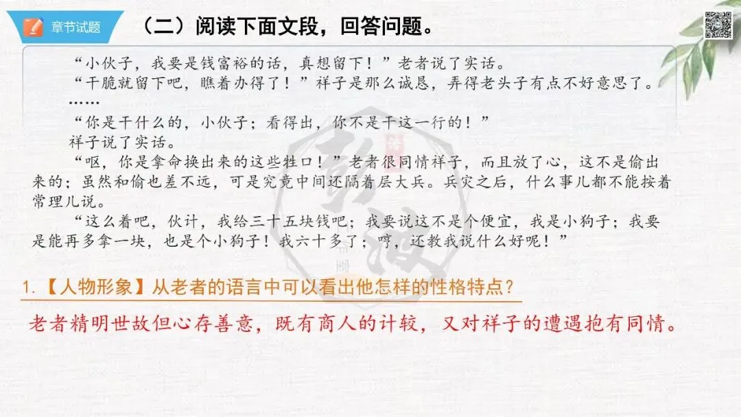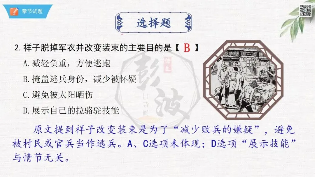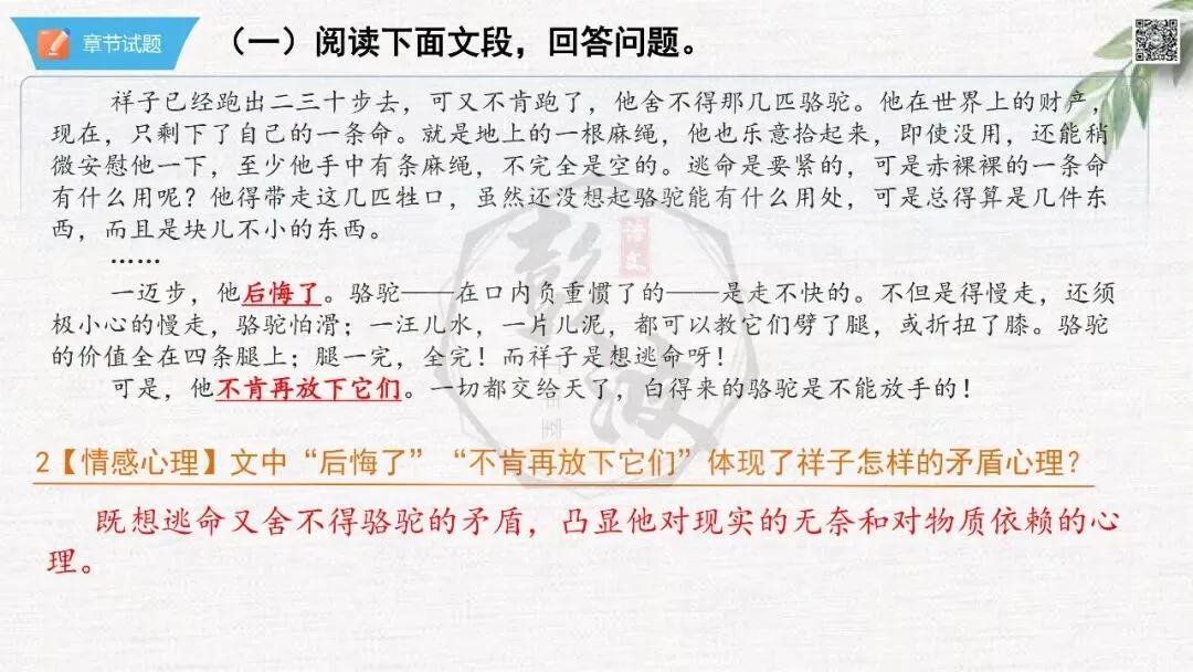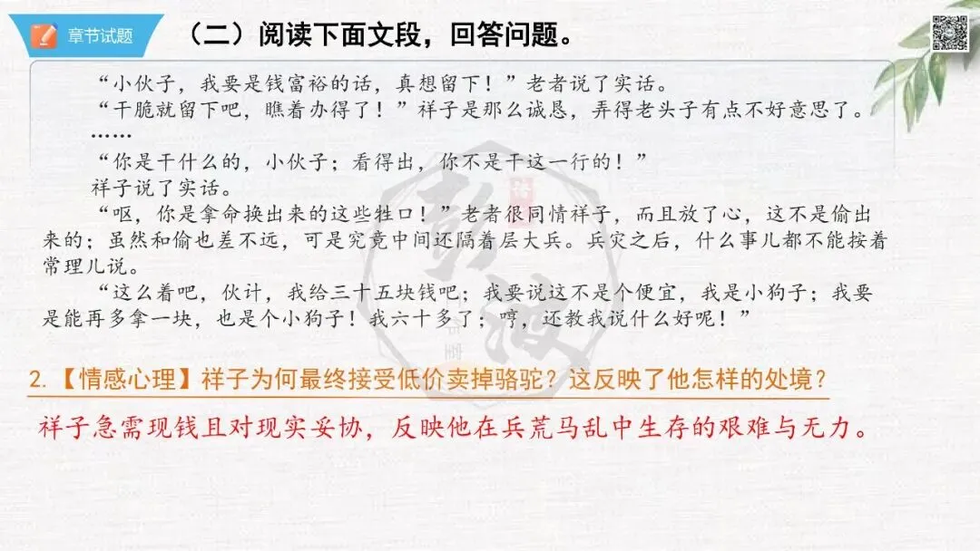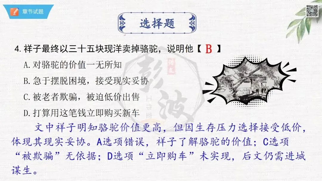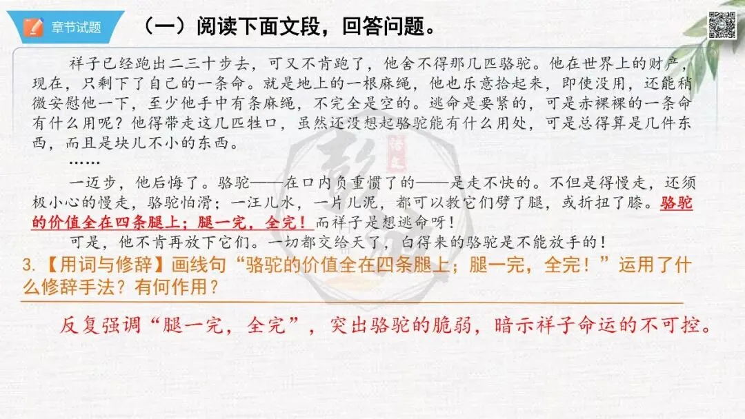 ◆02《骆驼祥子》章节课件24章-情节梳理+人物形象+语句赏析+章节试题(PPT)(65元)