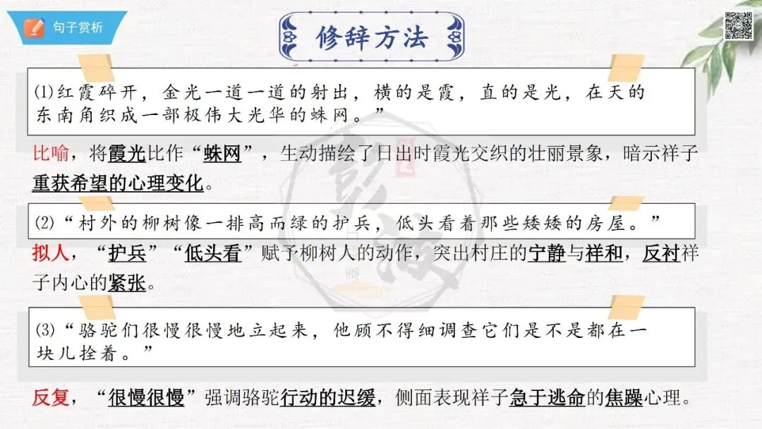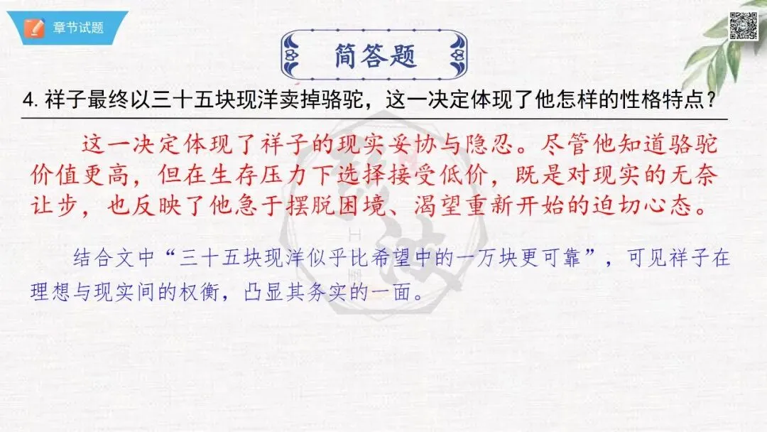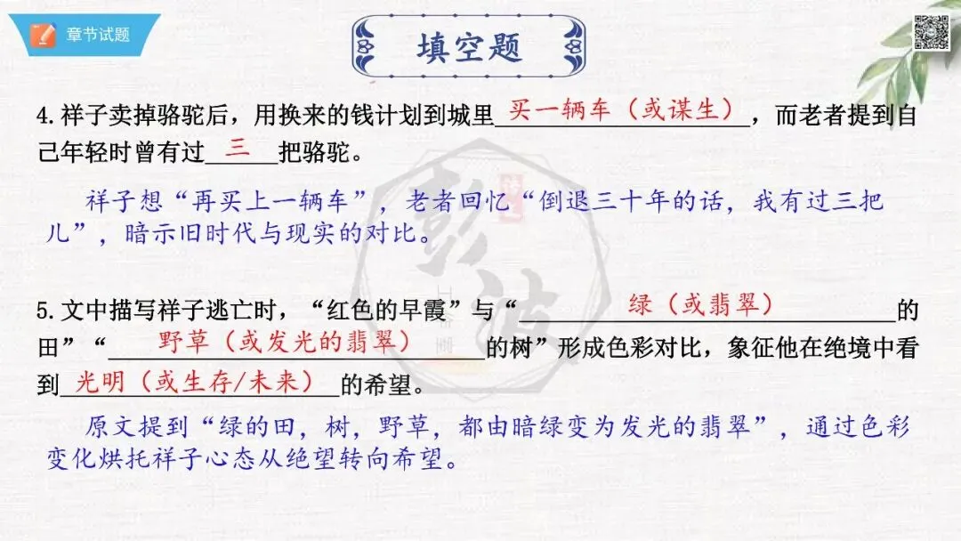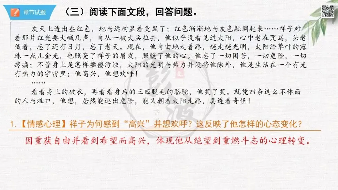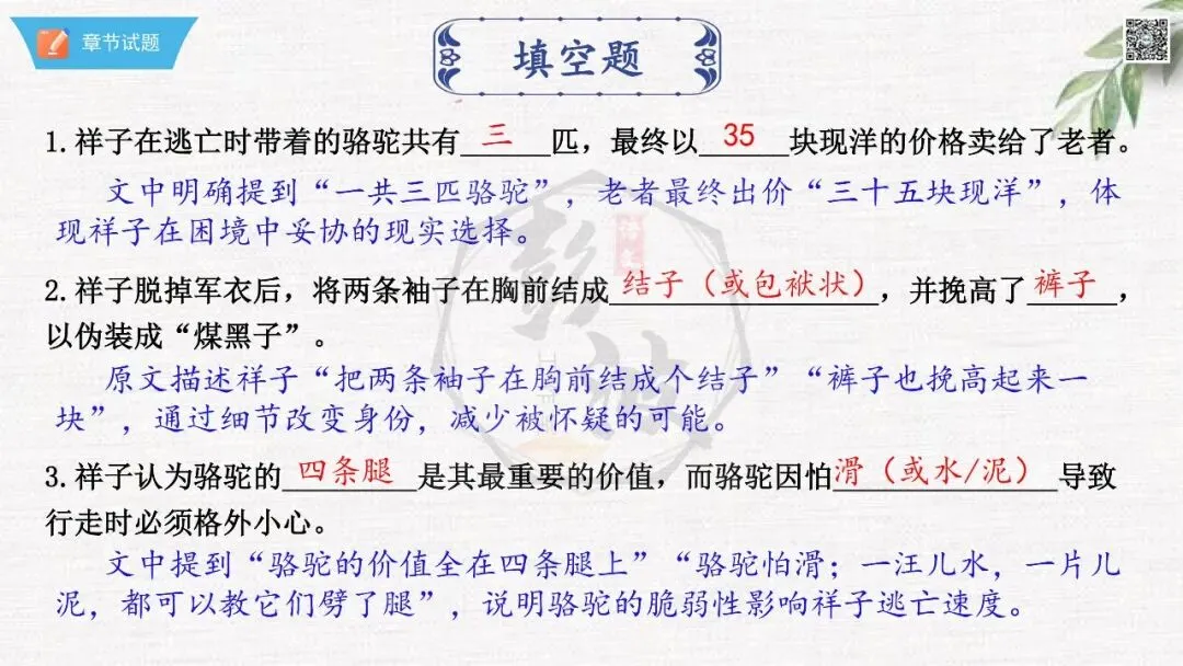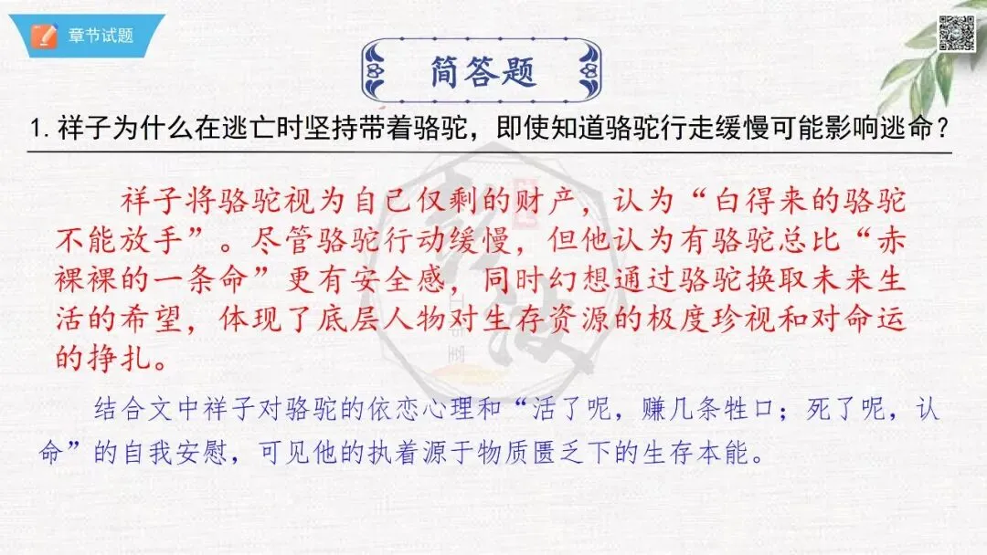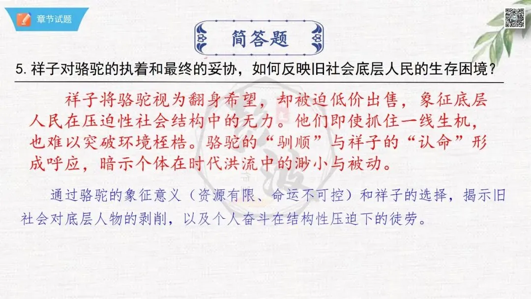 ◆02《骆驼祥子》章节课件24章-情节梳理+人物形象+语句赏析+章节试题(PPT)(65元)