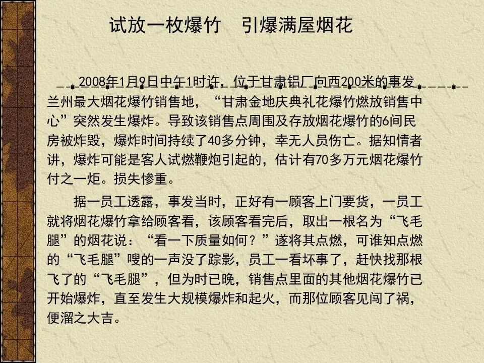 “安全航行”公众号精心整理推出《烟花爆竹系列超全资料》,一套涵盖法律、案例、培训、实操的全方位工具包,助您系统性提升安全管理能力,防患于未然。