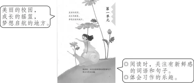 【设计意图】三年级开始,教材编排体例与一、二年级有很多不同,其中最为明显的是“单元导语”的出现。关注篇章页的学习,能更好地培养学生的整体阅读意识,有助于学生明确整个单元的学习内容及学习目标,有利于学生的语文综合素养的提升。