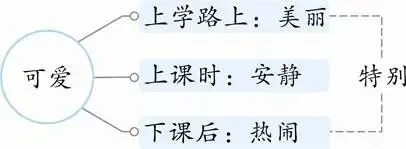 1.整体感知全段。默读第3自然段,思考:在这一自然段中,作者分了几个方面来叙述这所小学的“可爱”?(板书:上课时,下课后)