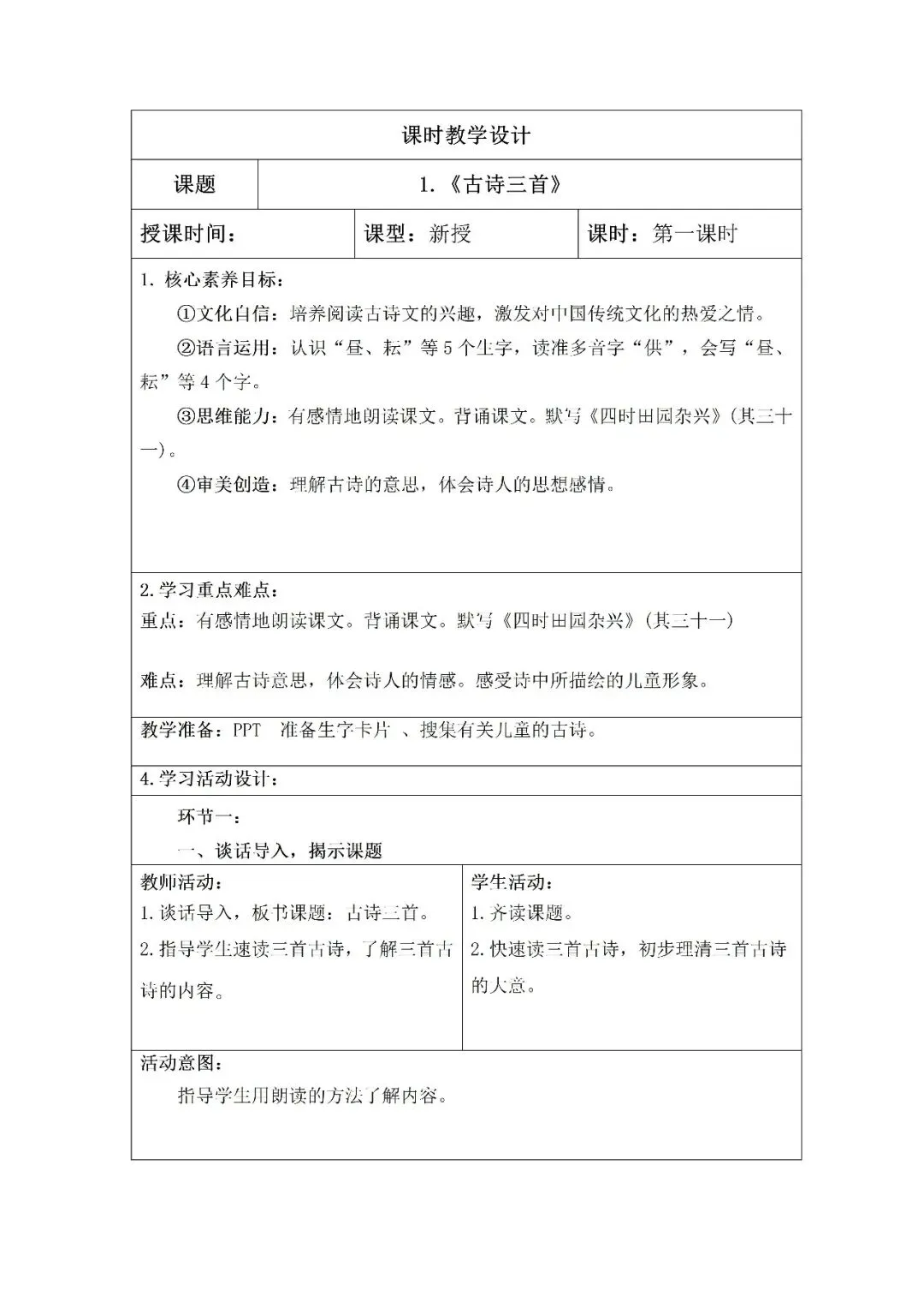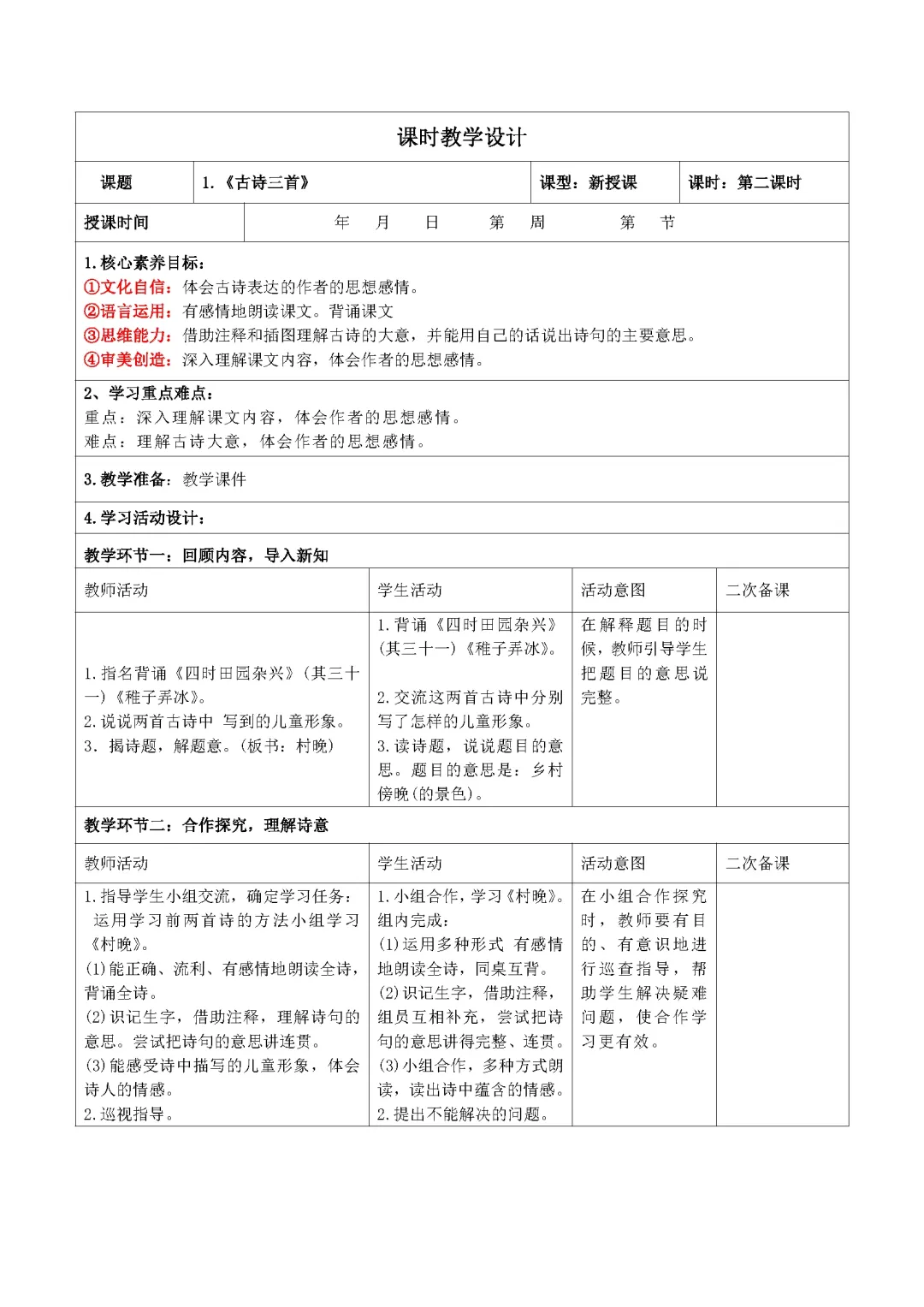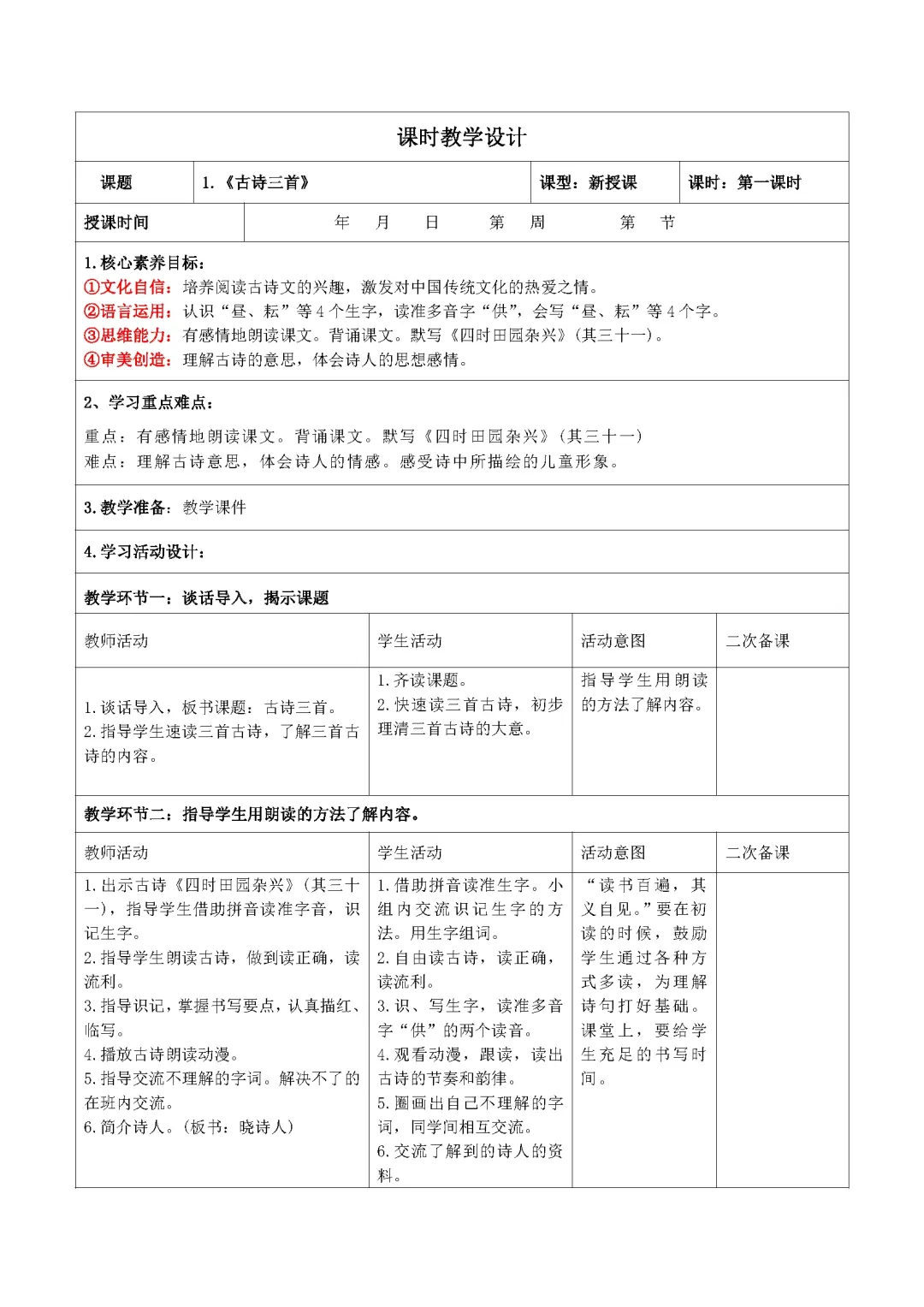 手写教案一例
