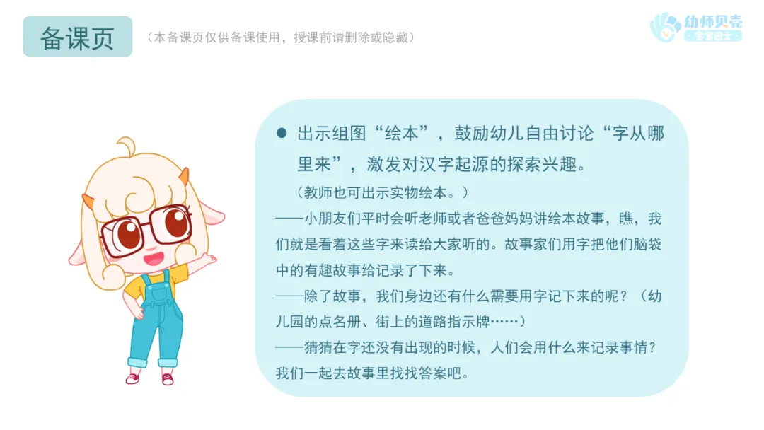 l出示组图“绘本”,鼓励幼儿自由讨论“字从哪里来”,激发对汉字起源的探索兴趣。