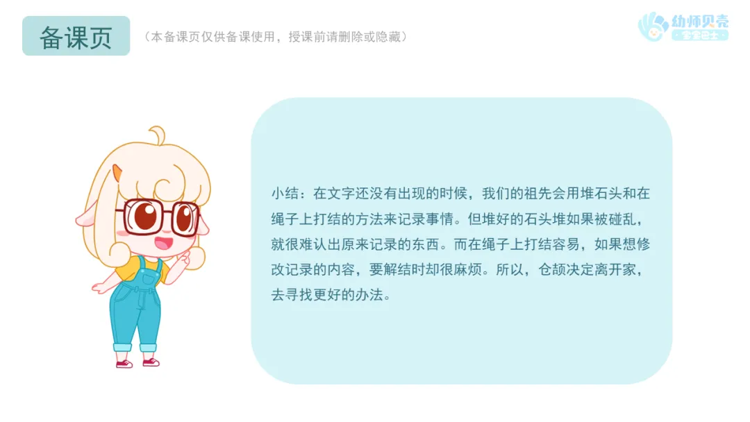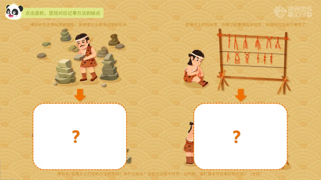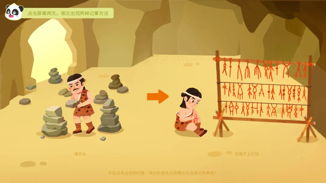 ——猜猜在字还没有出现的时候,人们会用什么来记录事情?我们一起去故事里找找答案吧。