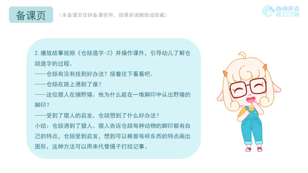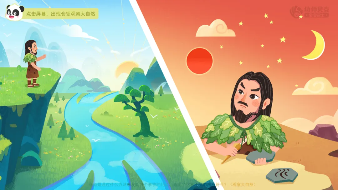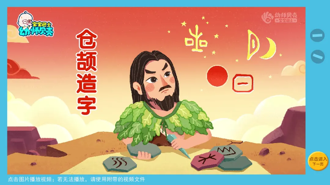 2.播放故事视频《仓颉造字-2》并操作课件,引导幼儿了解仓颉造字的过程。