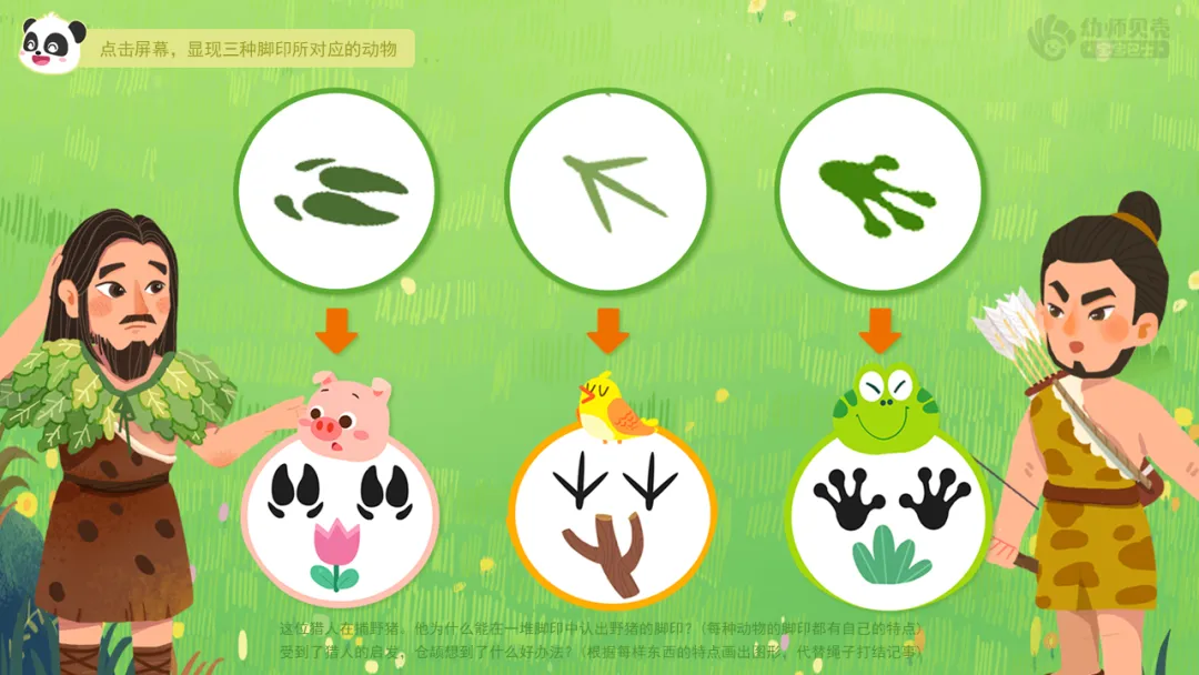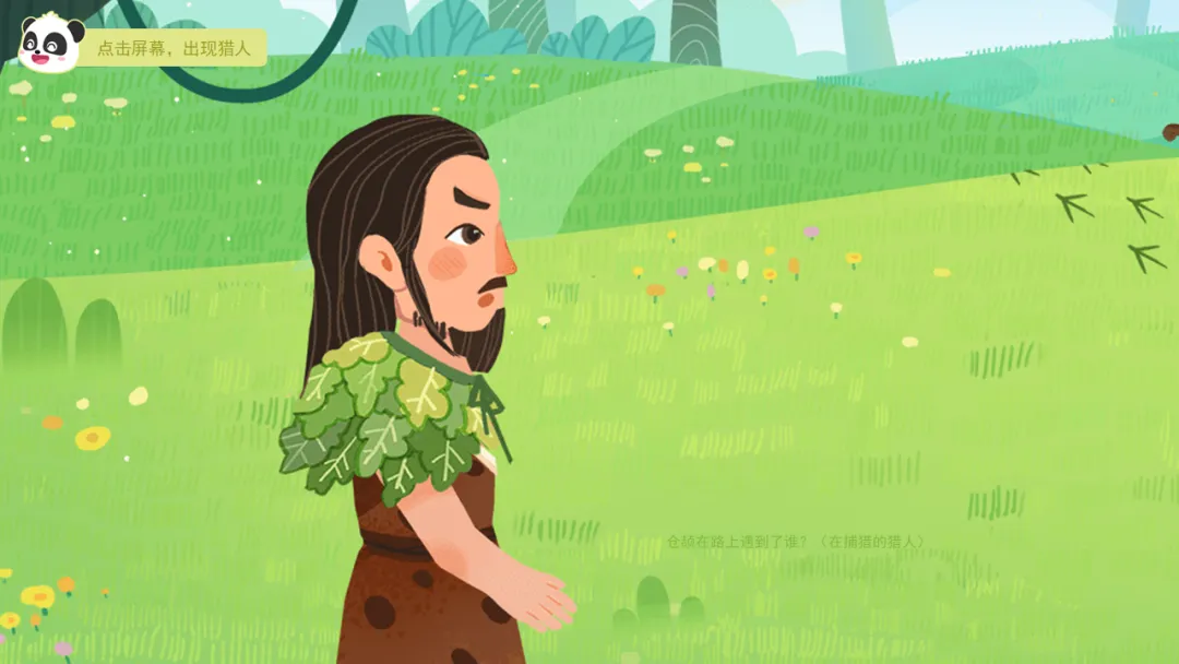 小结:仓颉遇到了猎人。猎人告诉仓颉每种动物的脚印都有自己的特点,仓颉受到启发,想到可以根据每样东西的特点画出图形,这种方法可以用来代替绳子打结记事。
