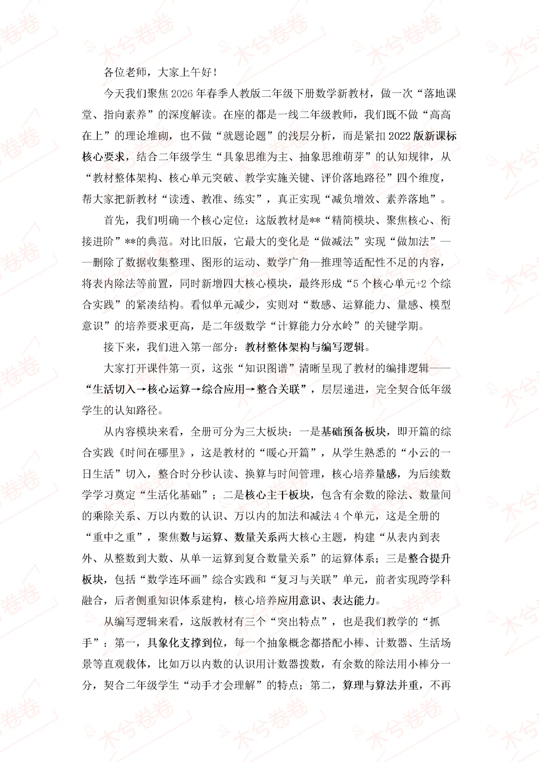 3-2026年春季人教版三年级下册数学新教材解读培训逐字稿10页