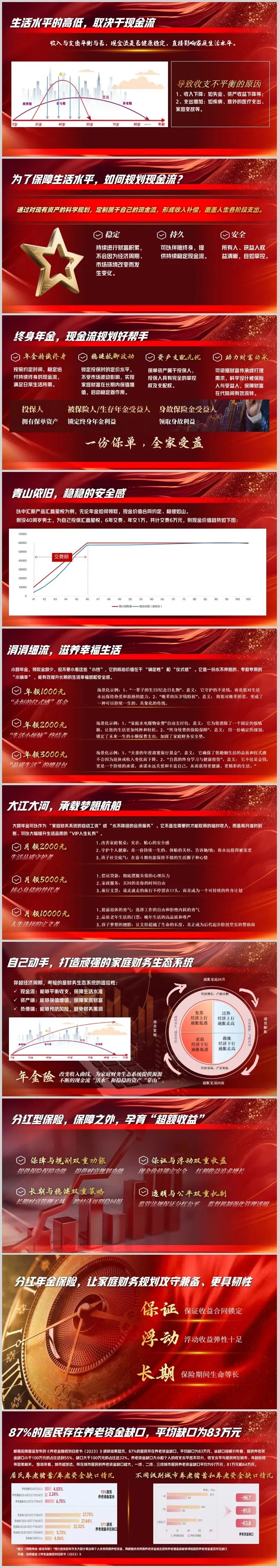 通过定制属于自己的现金流,家庭可以实现收入补偿,覆盖人生各阶段的支出。年金保险的稳定性、分红型保险的增长潜力以及分红年金保险的长期稳健策略,共同构建了一个强大的家庭财务生态系统。在这个系统中,现金流能够平衡收支,保障生活水准;资产端能够保值增值,保障家庭财富;负债端能够预防风险,避免财务黑洞。