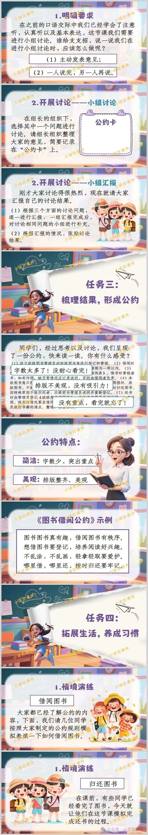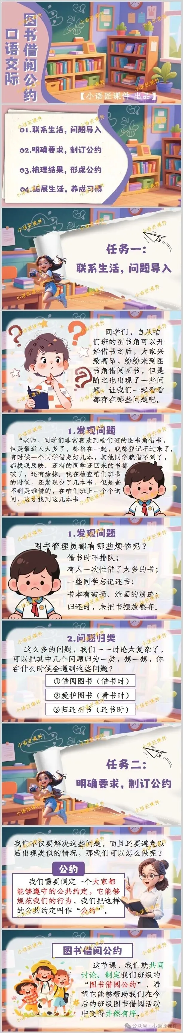 今天给大家分享的是部编人教版二年级下册《口语交际:图书借阅公约》的独家课件。