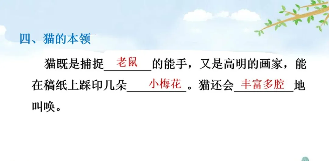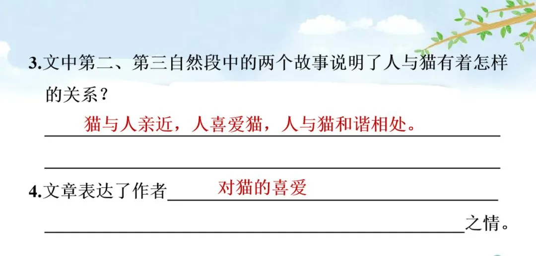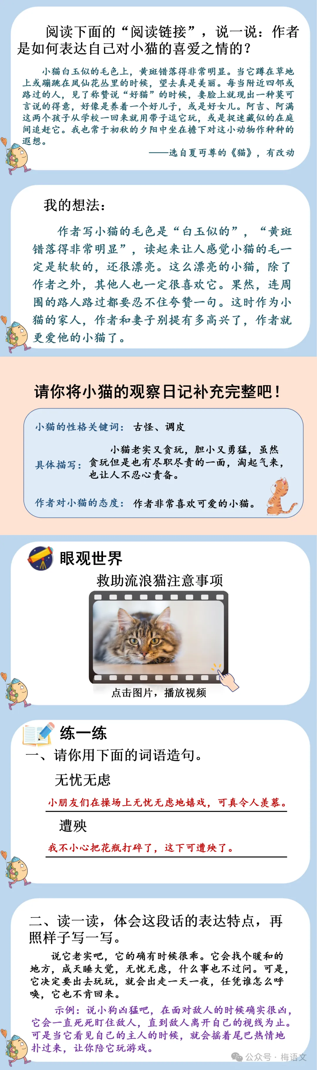2.抓住课文中描写猫的特点的句子,理解课文内容,体会作者对猫的喜爱之情。