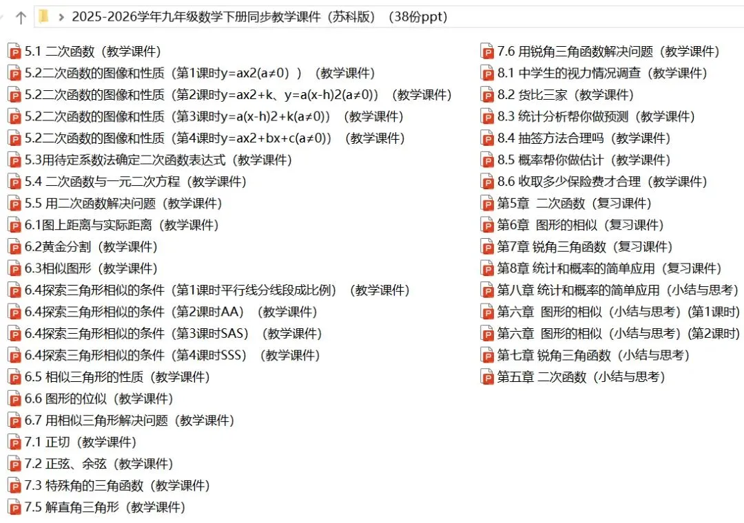 >2026年九下数学苏科版:同步教学课件38份ppt | 完整电子版文档可下载