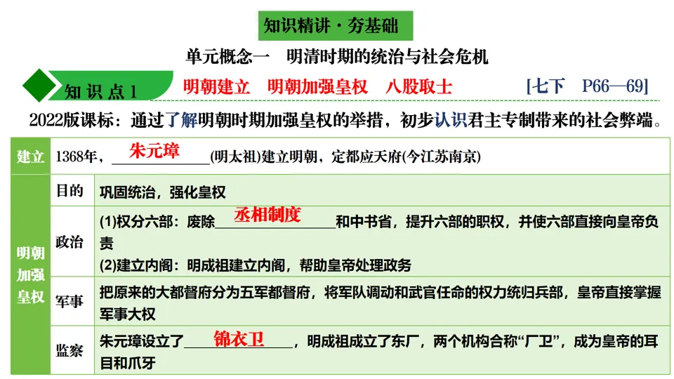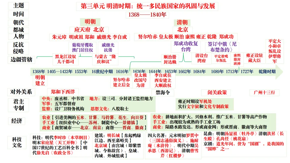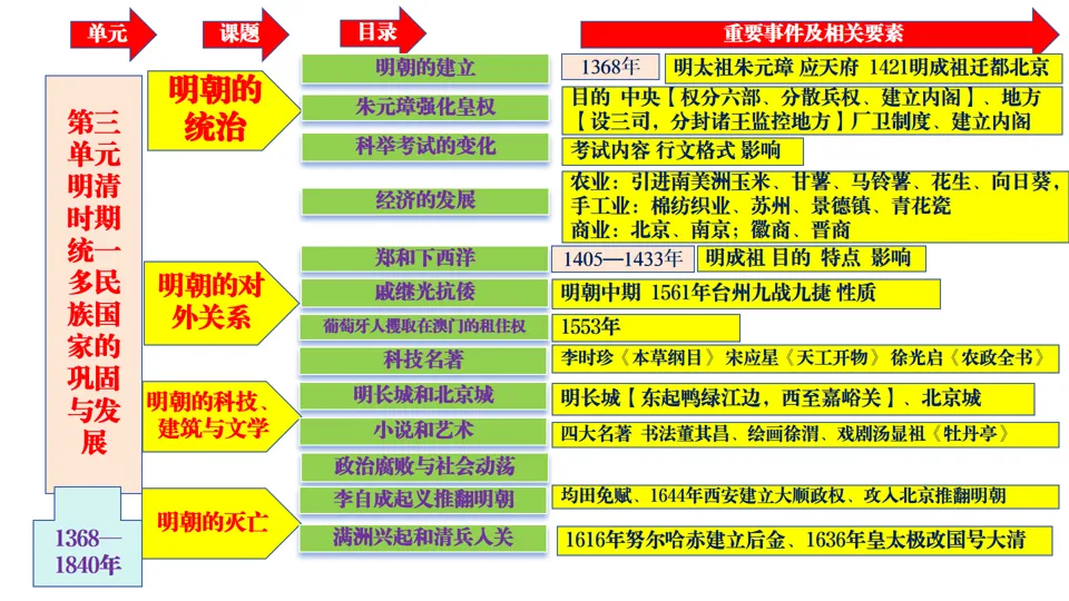 >2026中考历史总复习单元框架版课件:七下第三单元:明清时期 统一多民族国家的巩固和发展