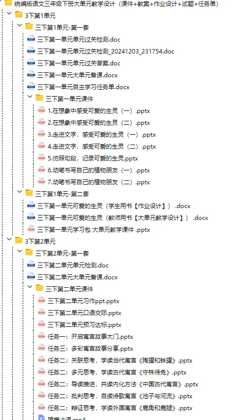 小学语文三年级下册 单元教学设计+课件PPT+试题+任务单(统编版),可下载打印!