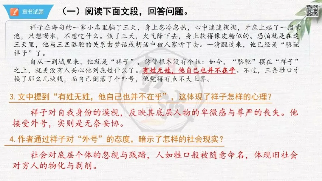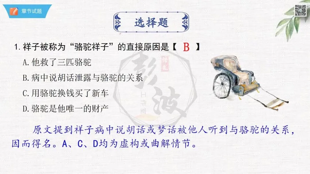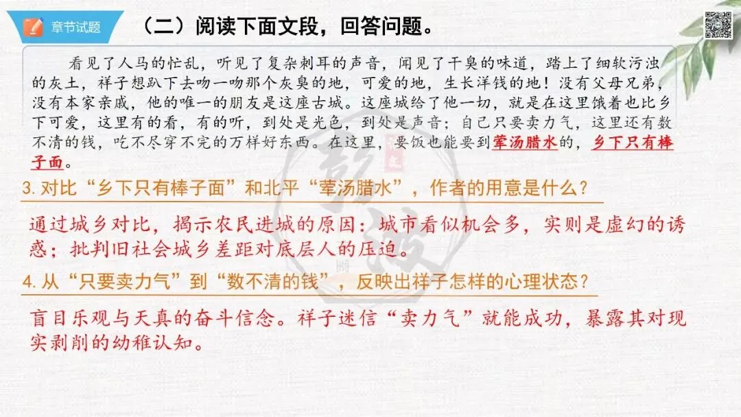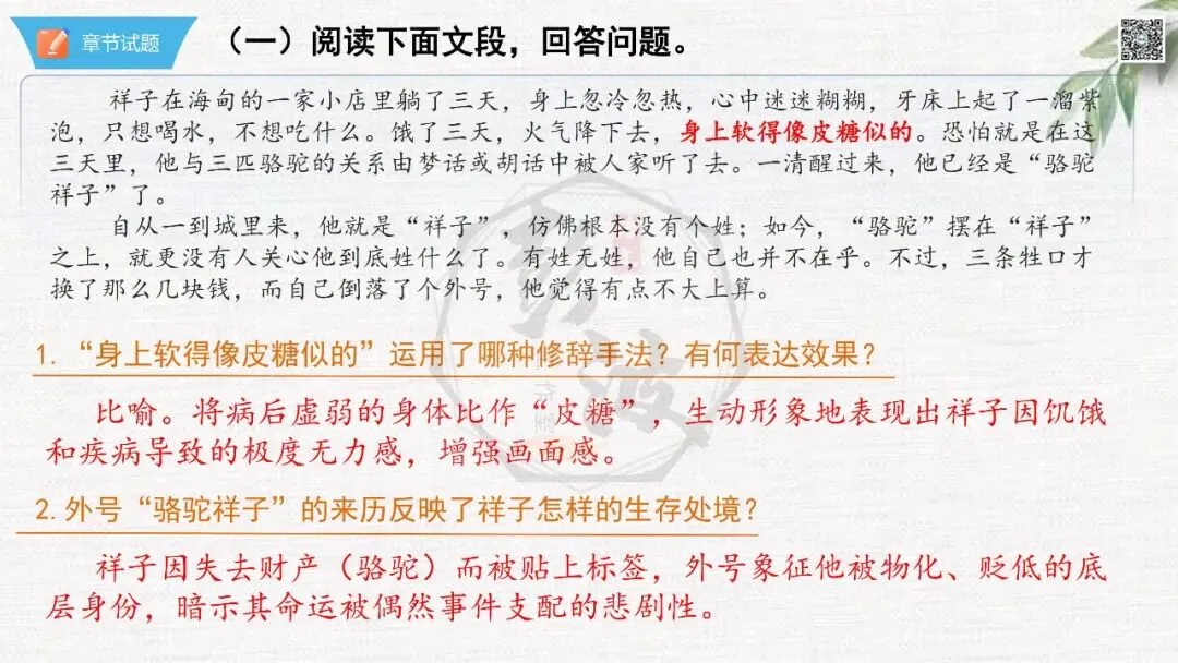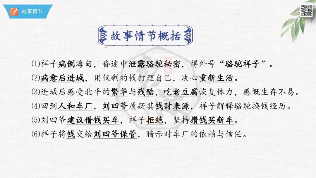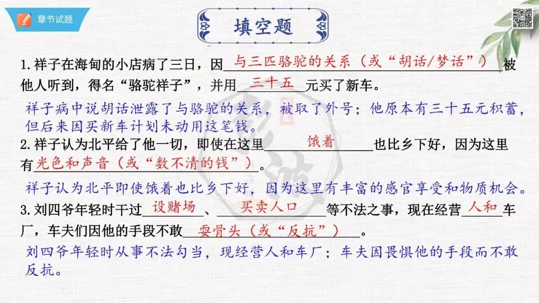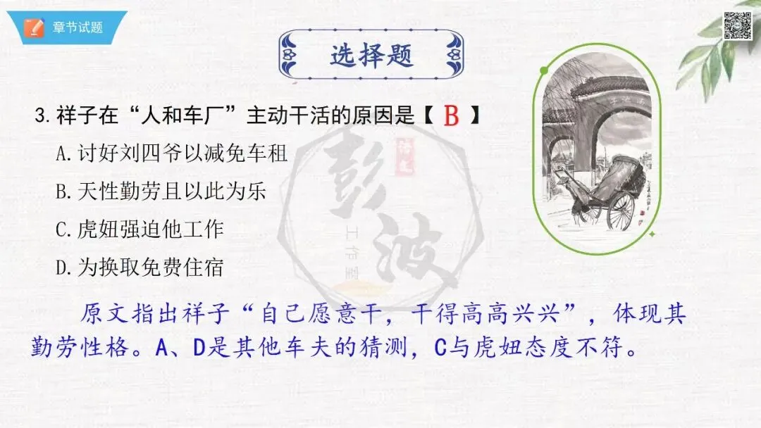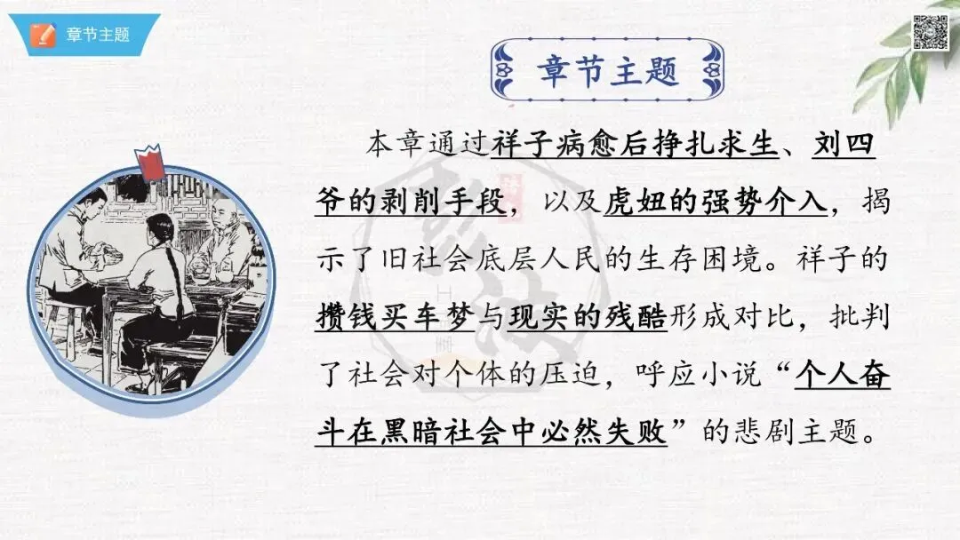 ◆02《骆驼祥子》章节课件24章-情节梳理+人物形象+语句赏析+章节试题(PPT)(65元)