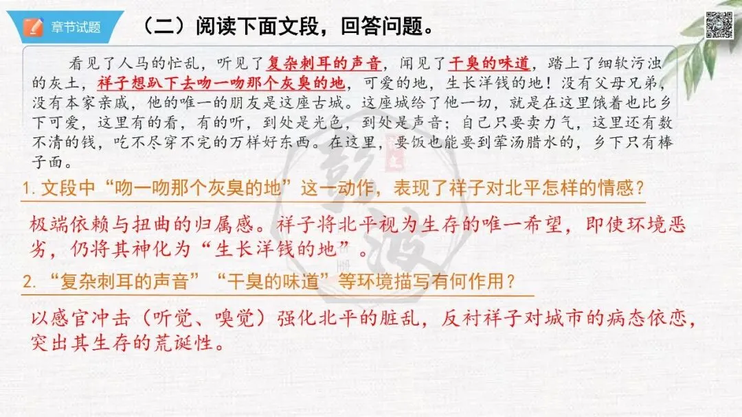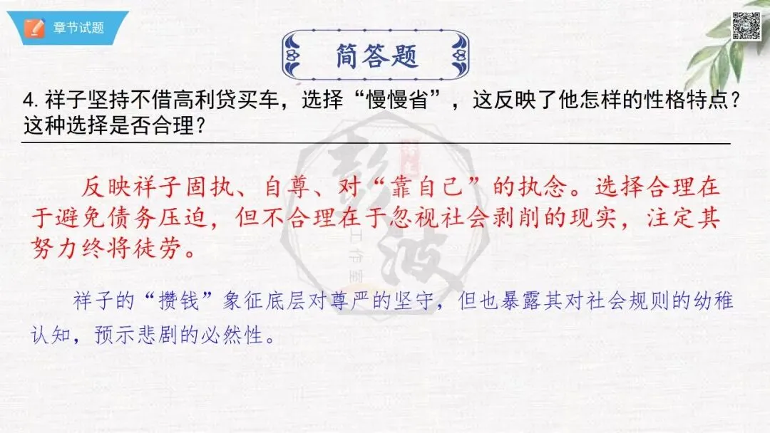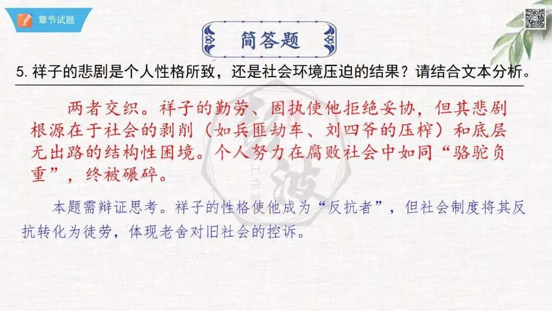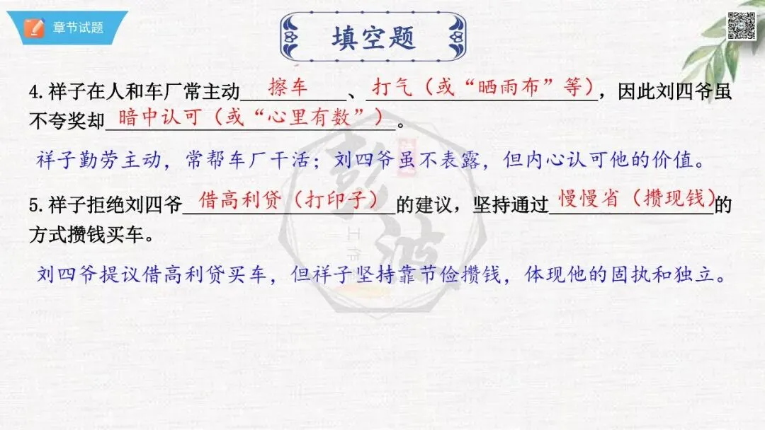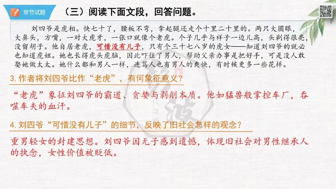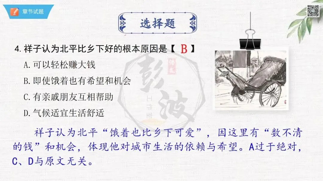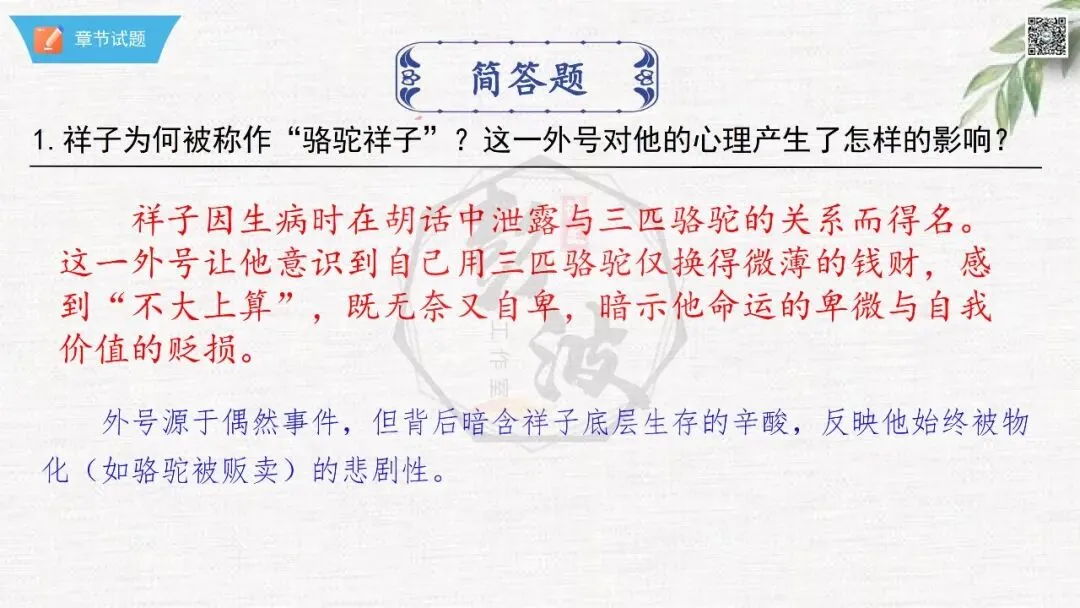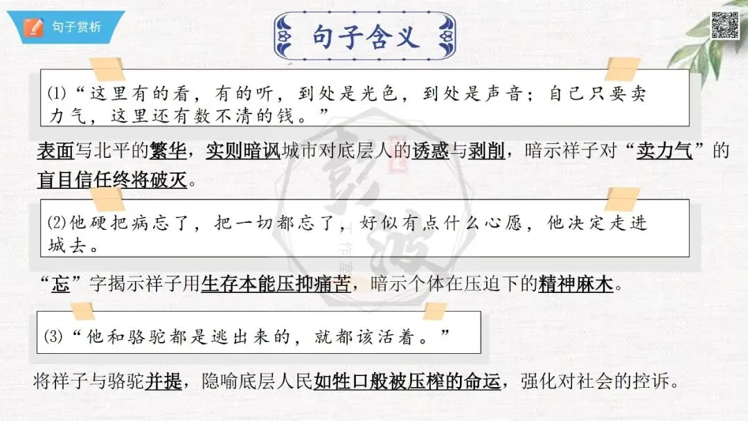 ◆02《骆驼祥子》章节课件24章-情节梳理+人物形象+语句赏析+章节试题(PPT)(65元)