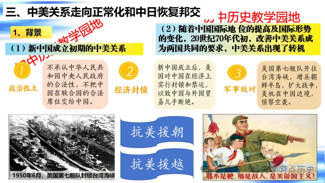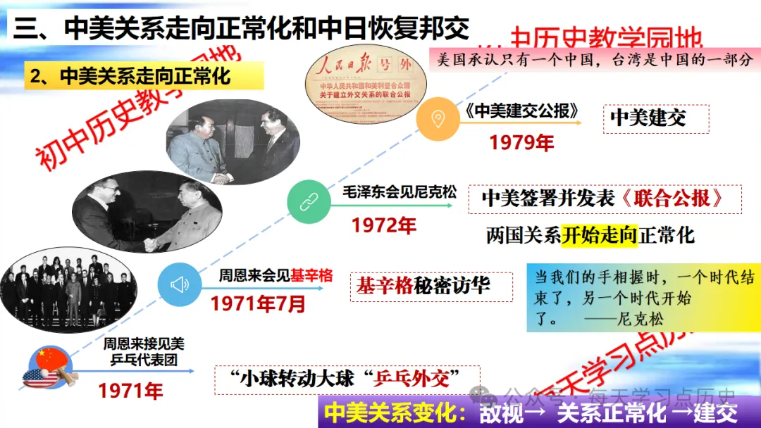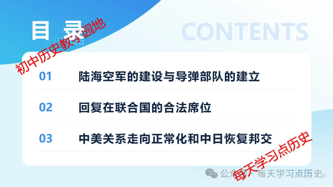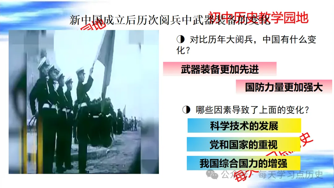 每天学习点历史公众号是初中历史教学园地的辅助号,发表的资料习题多点
