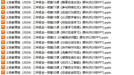 2025年春新教材备课资料点及相对应名称即可下载…2025春(新教材)统编版语文一年级下册精品课件PPT2025春(新教材)北师大版数学一年级下册精品课件PPT2025春(新教材)人教版数学一年级下册精品课件PPT2025春(新教材)西师大版数学一年级下册精品课件PPT2025春(新教材)外研版3起英语三年级下册精品课件PPT2025春(新教材)冀教版英语三年级下册精品课件PPT点及相对应名称即可下载…2025春(新教材)沪科版物理八年级下册精品课件PPT2025春(新教材)沪粤版物理八年级下册精品课件PPT2025春(新教材)教科版物理八年级下册精品课件PPT2025春(新教材)人教版物理八年级下册精品课件PPT2025春(新教材)人教版物理九年级下册精品课件PPT2025春(新教材)苏科版物理九年级下册精品课件PPT新教材电子课本点及相对应名称即可下载…2024(新教材)外研版西班牙语七年级必修1上下册高清版课本2024(新教材)外研版法语七年级必修起步上下册高清课本2024(新教材)外研版德语七年级必修全册高清课本2025春(新教材)多版本英语三年级下册高清课本2025春(新教材)多版本数学一年级下册高清课本2025春(新教材)多版本美术艺术造型一年级下册高清课本2025春(新教材)多版本音乐艺术唱游一年级下册高清课本2024秋(新教材)初中多版本英语七年级上册高清电子课本下载提示01下载方法一