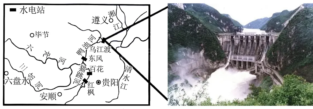 【详解】(1)乌江上游位于云贵高原与四川盆地过渡地带,地势起伏大,河流落差大;流域内降水丰富,河流水量大、流速快,下蚀作用强烈,同时山区基岩(如石灰岩)易受流水侵蚀,长期侵蚀下使得河谷呈现“V”形。
